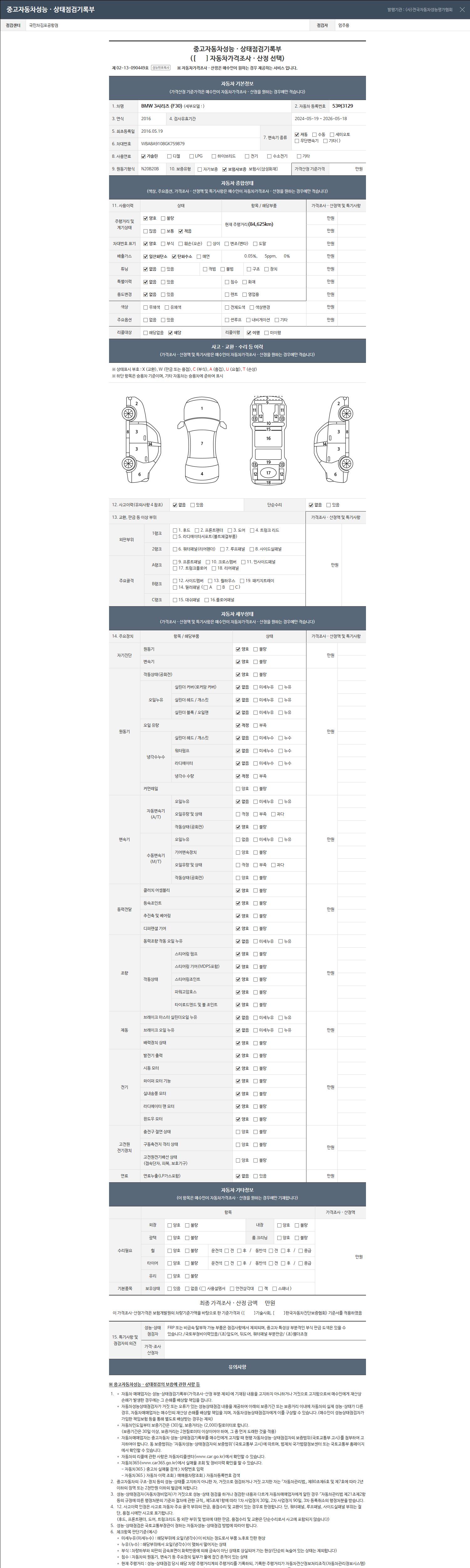- 2. 차량 등록증이나 성능점검지 등을 상담자에게 요청및 확인하시고 사전에 미리 점검 하시기를 권유드립니다.