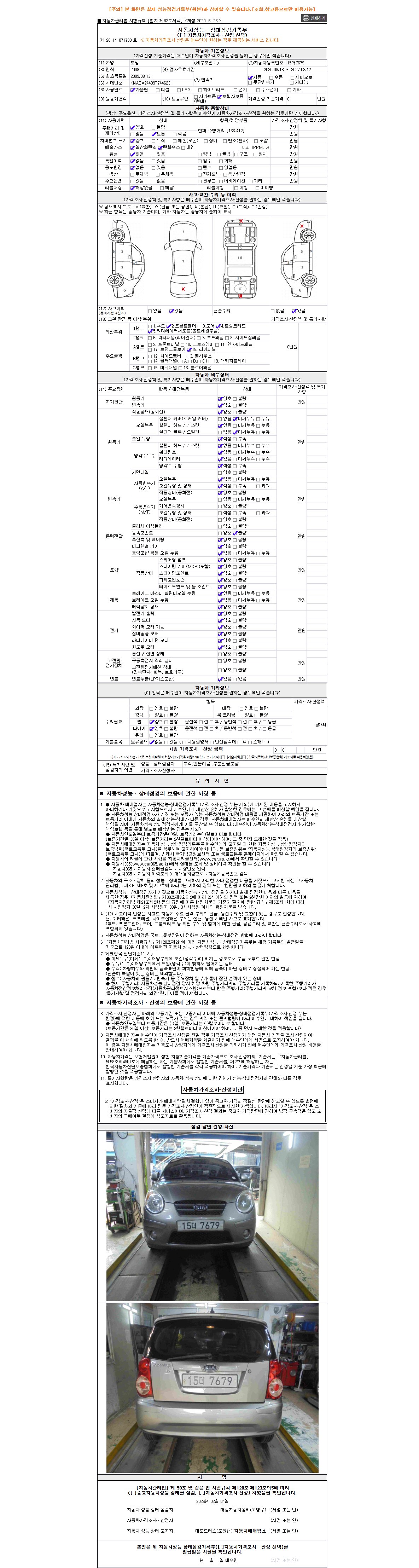 -중고자동차 매매업자를 통해 차량을 구입하실 경우 반드시 "중고자동차 성능, 상태점검 기록부"를 교뷰 받으셔야 하며, 매매업자는 반드시 의무 교부 하여야 압니다.