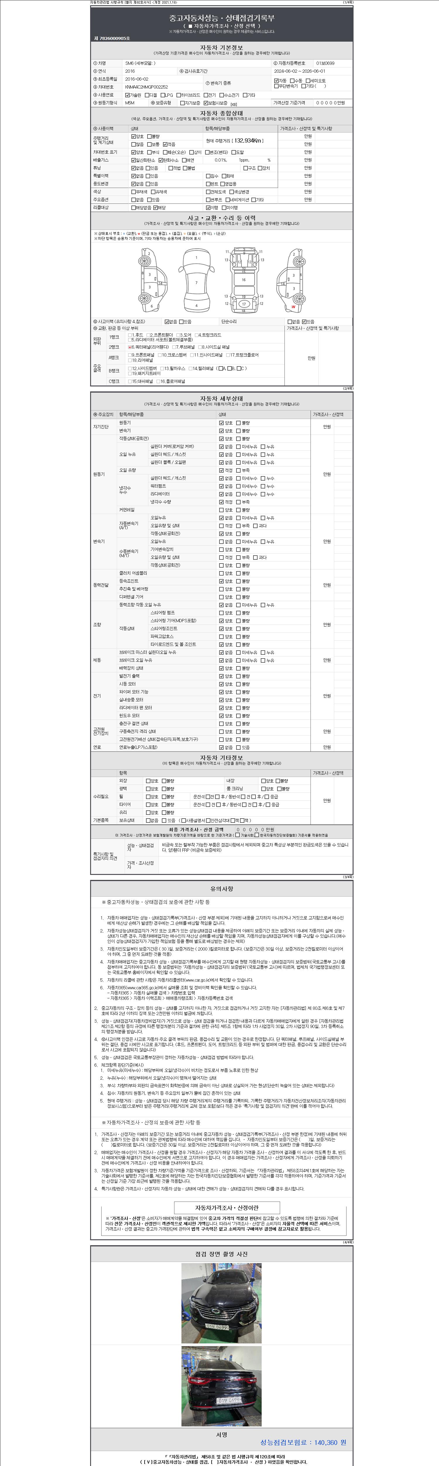 - 사고유무 : 성능기록부 참조
