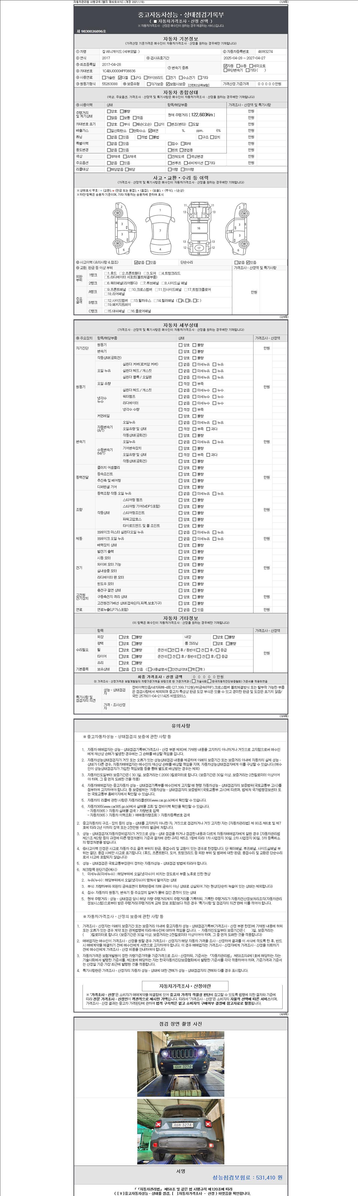 | 주행거리 | 122,603 km | 차량번호 | 46머3274 | 사고유무 | 성능기록부 참조 | 제시번호 | 제 2147483647 호 |