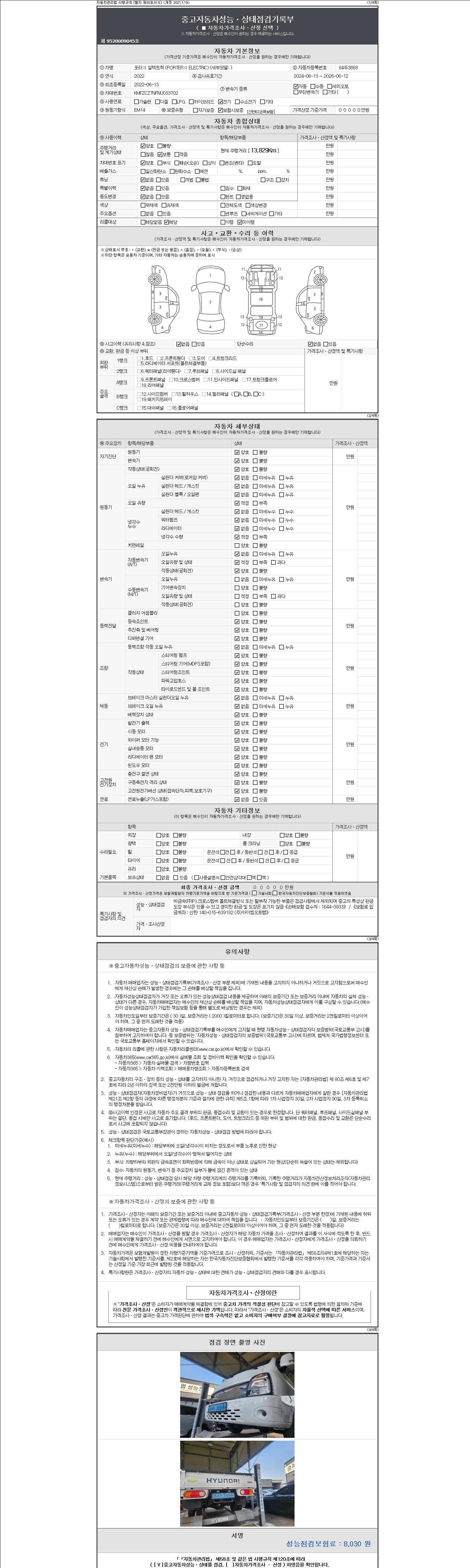 - 사고유무 : 성능기록부 참조
