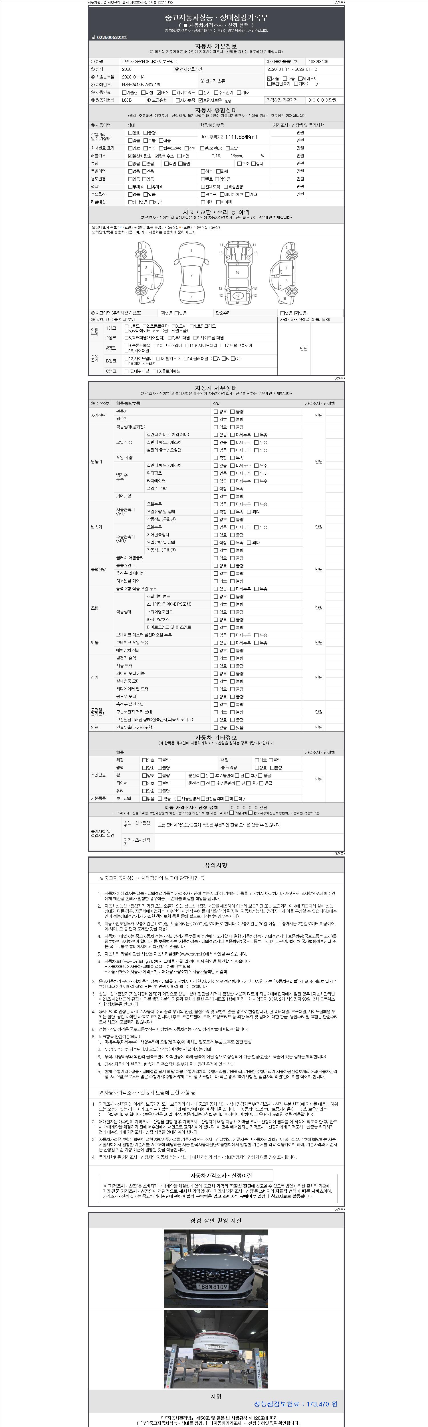 | 주행거리 | 111,654 km | 차량번호 | 188어8109 | 사고유무 | 성능기록부 참조 | 제시번호 | 제 2147483647 호 |