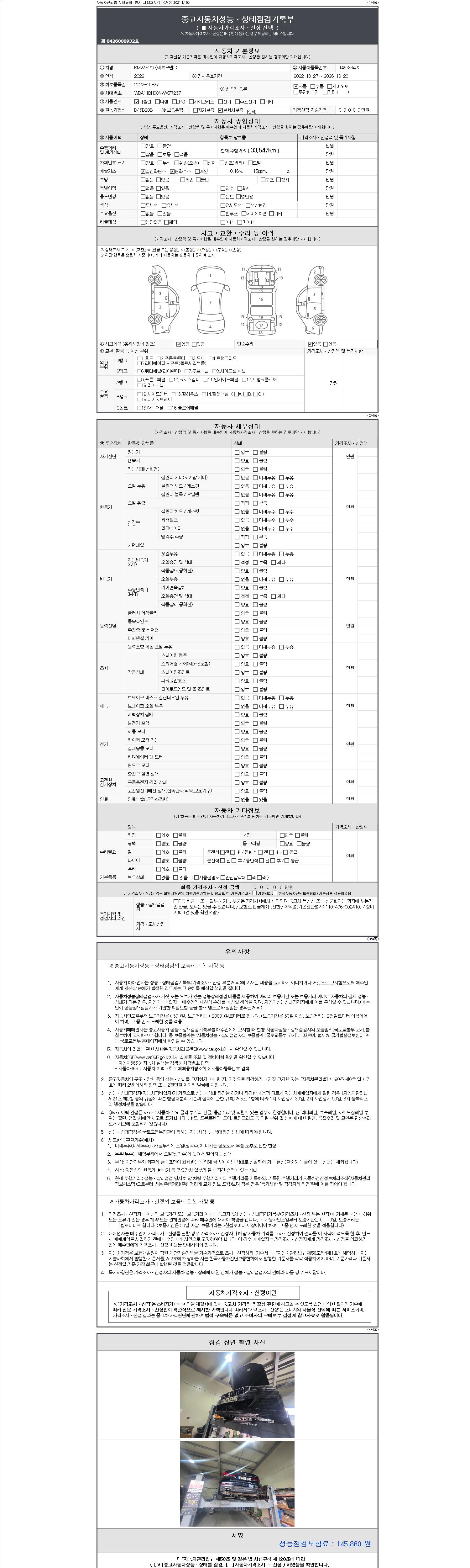 -중고자동차 매매업자를 통해 차량을 구입하실 경우 반드시 "중고자동차 성능, 상태점검 기록부"를 교뷰 받으셔야 하며, 매매업자는 반드시 의무 교부 하여야 압니다.