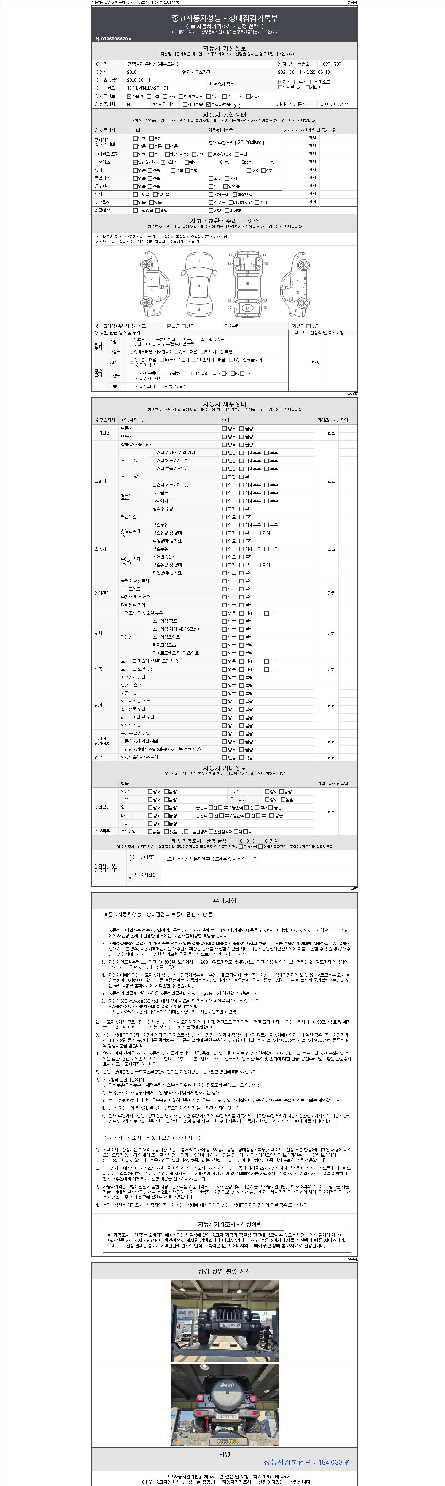 | 주행거리 | 26,204 km | 차량번호 | 183거9707 | 사고유무 | 성능기록부 참조 | 제시번호 | 제 2147483647 호 |