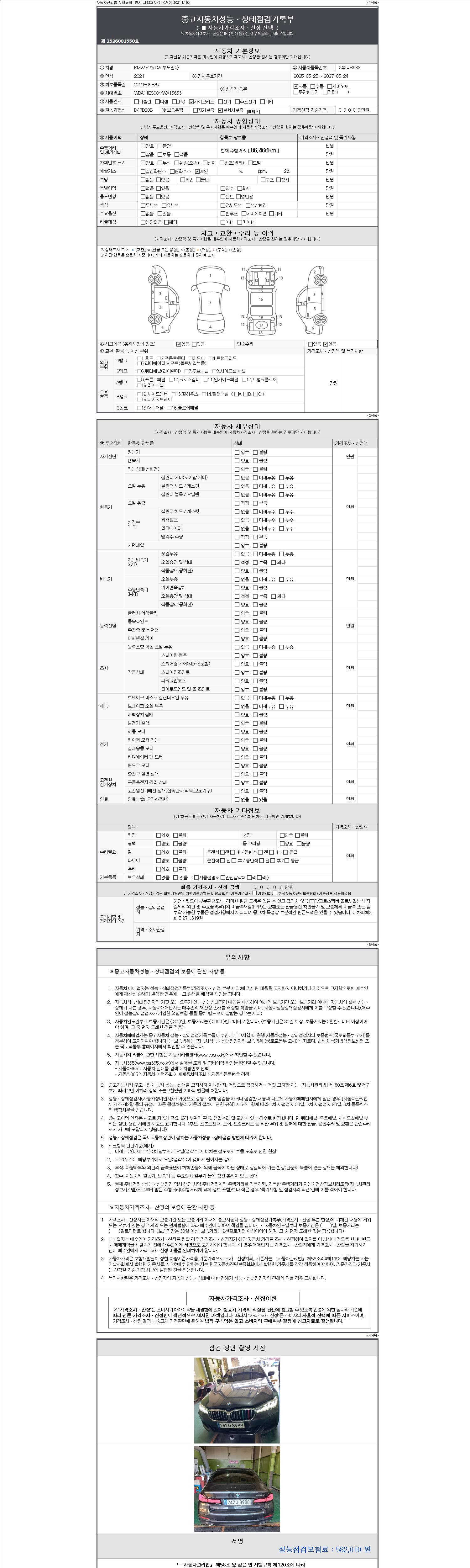 -중고자동차 매매업자를 통해 차량을 구입하실 경우 반드시 "중고자동차 성능, 상태점검 기록부"를 교뷰 받으셔야 하며, 매매업자는 반드시 의무 교부 하여야 압니다.