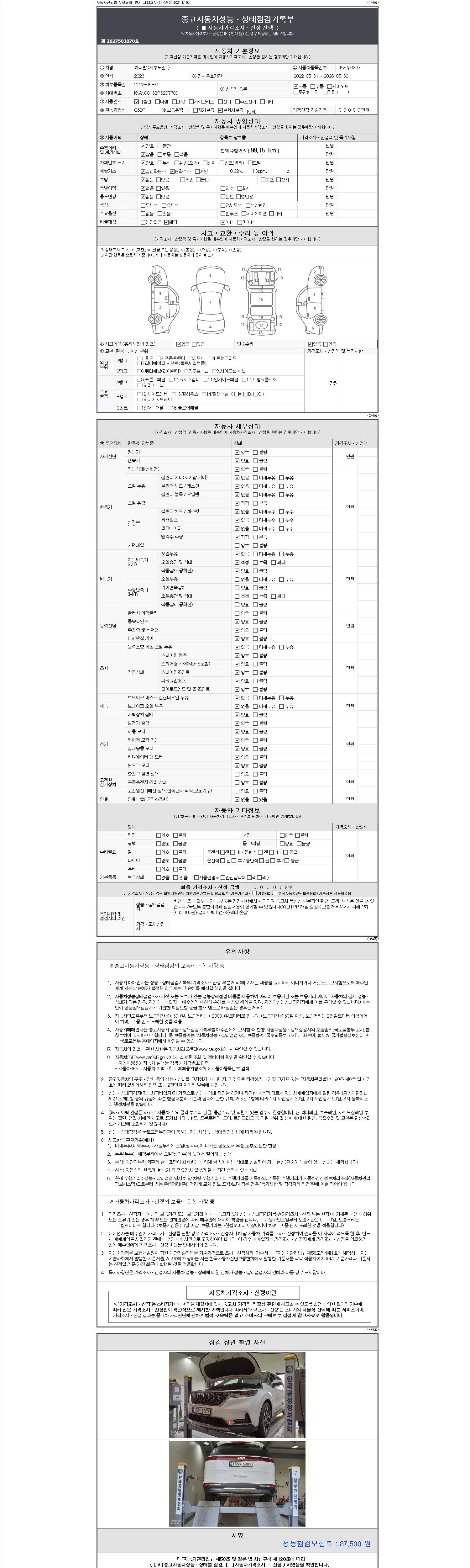 - 2. 차량 등록증이나 성능점검지 등을 상담자에게 요청및 확인하시고 사전에 미리 점검 하시기를 권유드립니다.