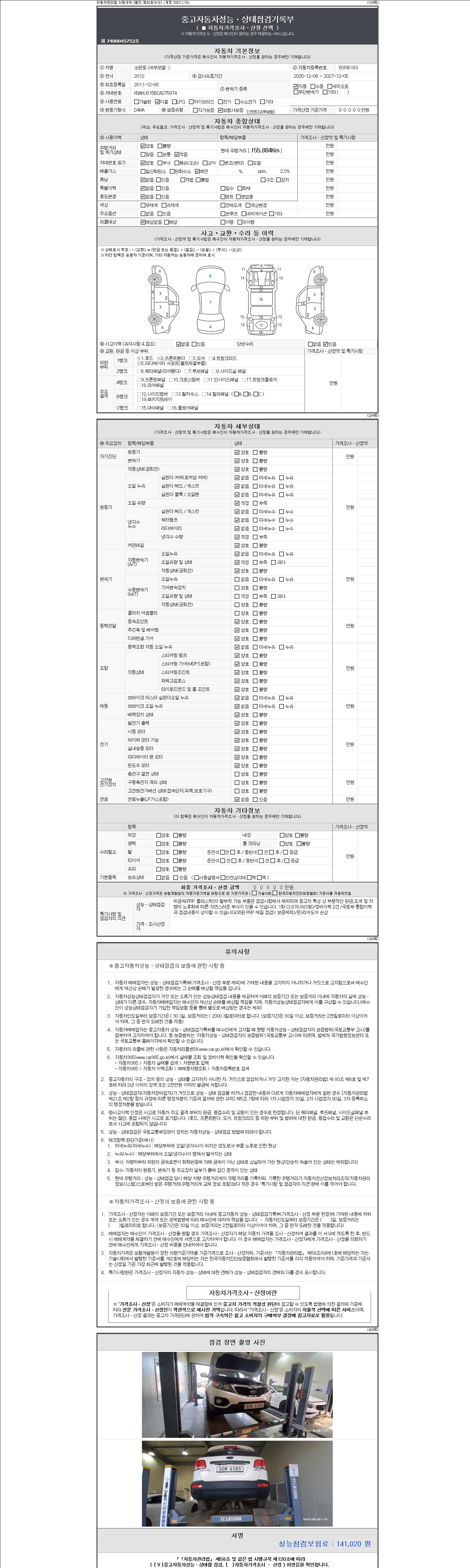 -중고자동차 매매업자를 통해 차량을 구입하실 경우 반드시 "중고자동차 성능, 상태점검 기록부"를 교뷰 받으셔야 하며, 매매업자는 반드시 의무 교부 하여야 압니다.