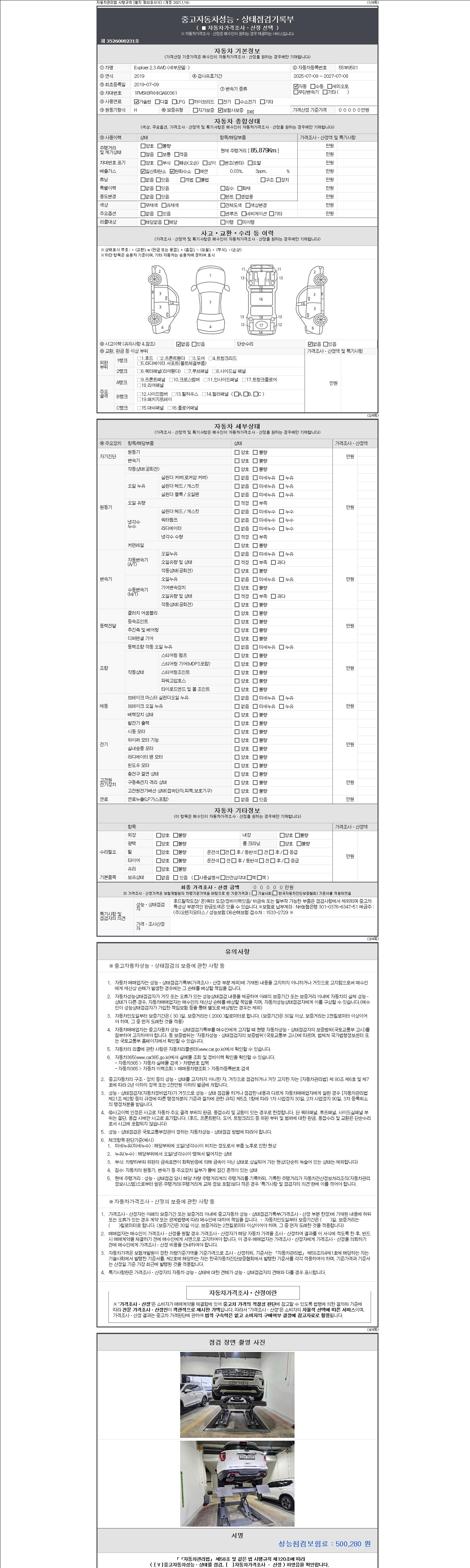 -중고자동차 매매업자를 통해 차량을 구입하실 경우 반드시 "중고자동차 성능, 상태점검 기록부"를 교뷰 받으셔야 하며, 매매업자는 반드시 의무 교부 하여야 압니다.