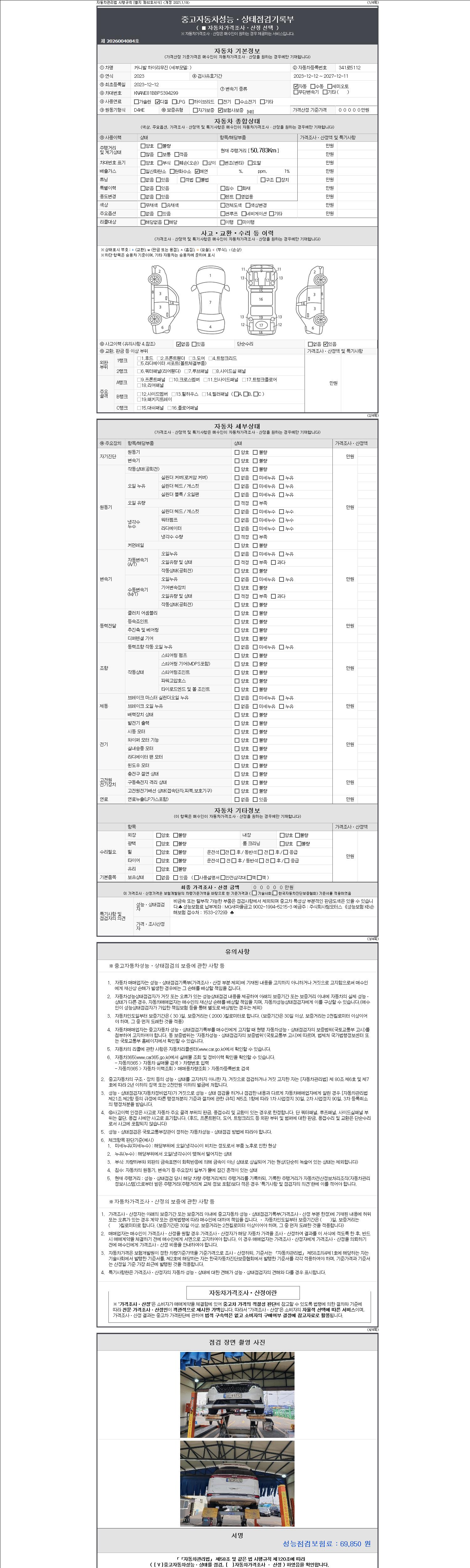 - 2. 차량 등록증이나 성능점검지 등을 상담자에게 요청및 확인하시고 사전에 미리 점검 하시기를 권유드립니다.