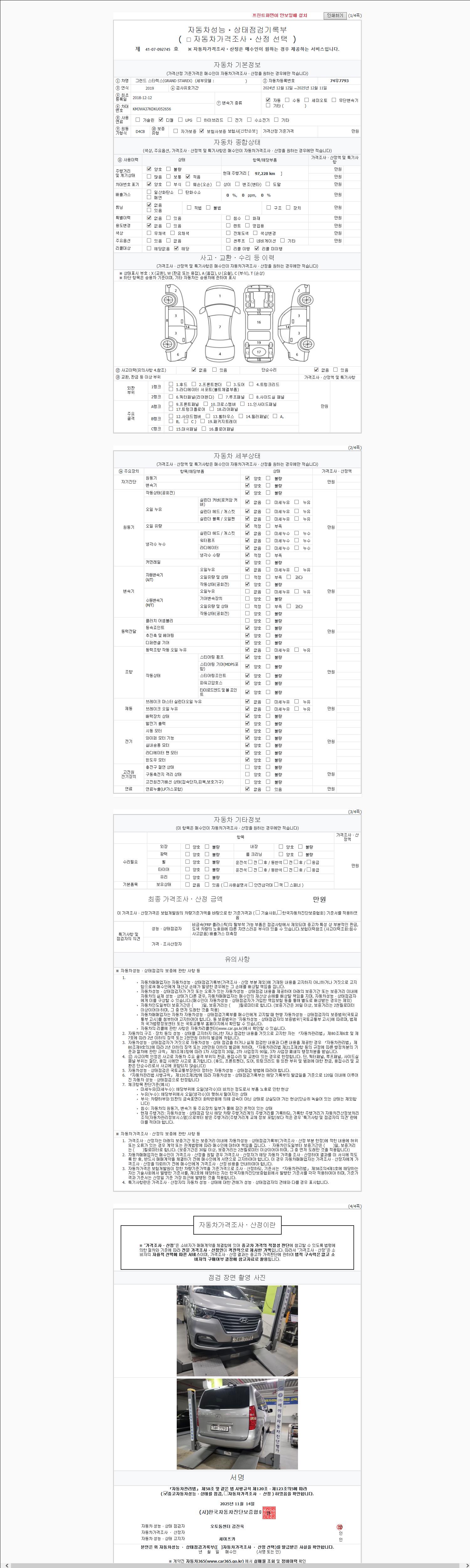 | 주행거리 | 97,228 km | 차량번호 | 74우7793 | 사고유무 | 성능기록부 참조 | 제시번호 | 제 2147483647 호 |