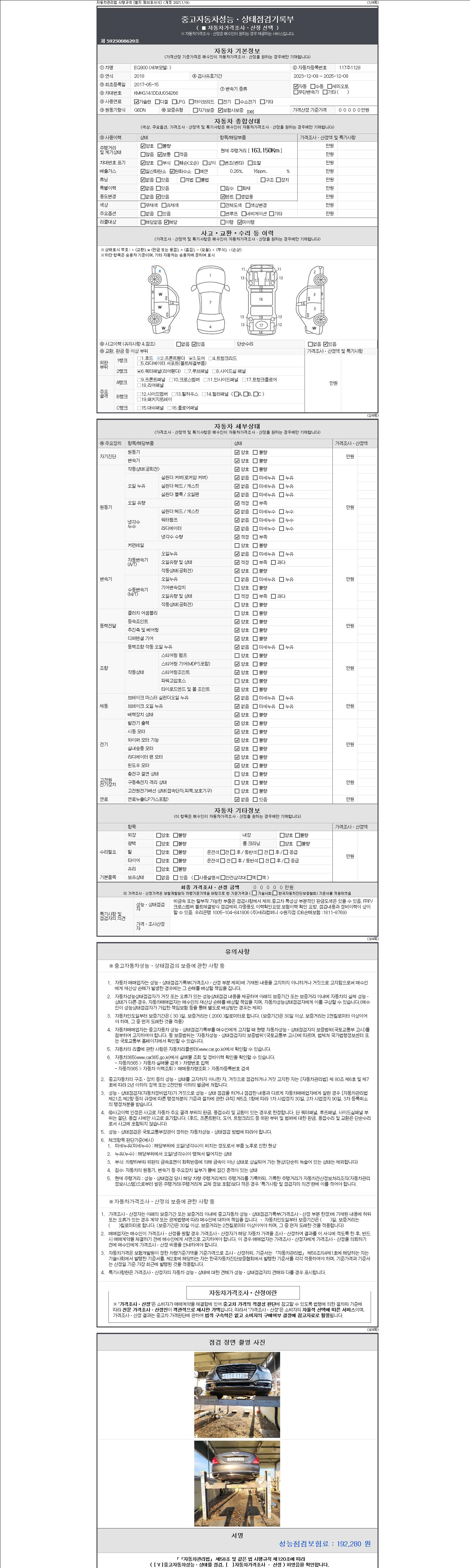 - 2. 차량 등록증이나 성능점검지 등을 상담자에게 요청및 확인하시고 사전에 미리 점검 하시기를 권유드립니다.