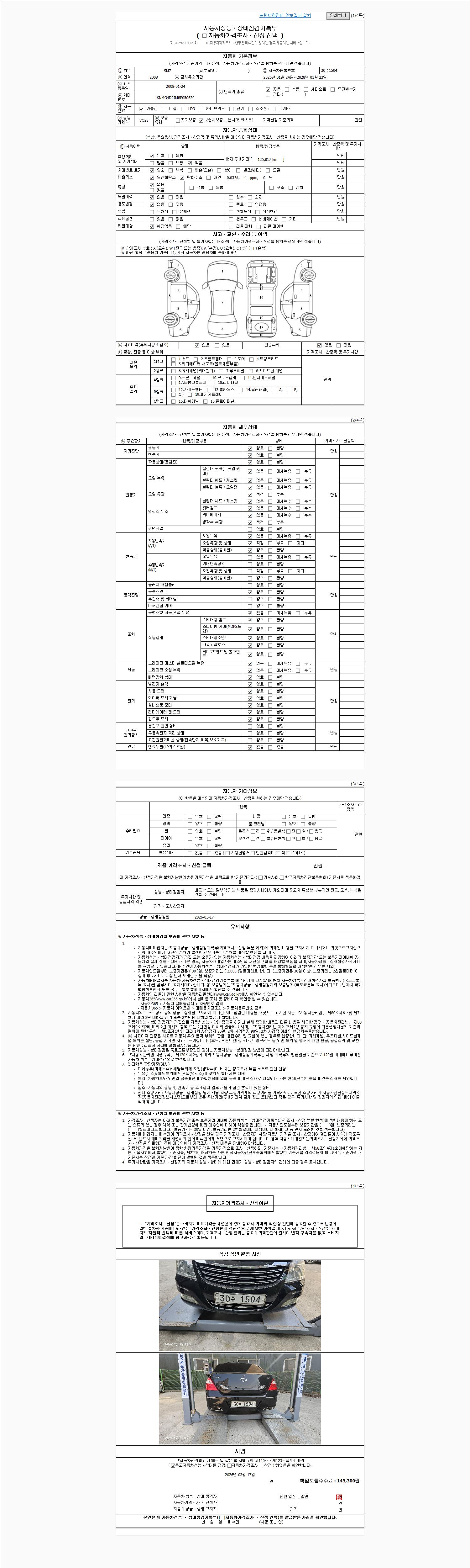 | 주행거리 | 125,817 km | 차량번호 | 30수1504 | 사고유무 | 성능기록부 참조 | 제시번호 | 제 2026014020 호 |