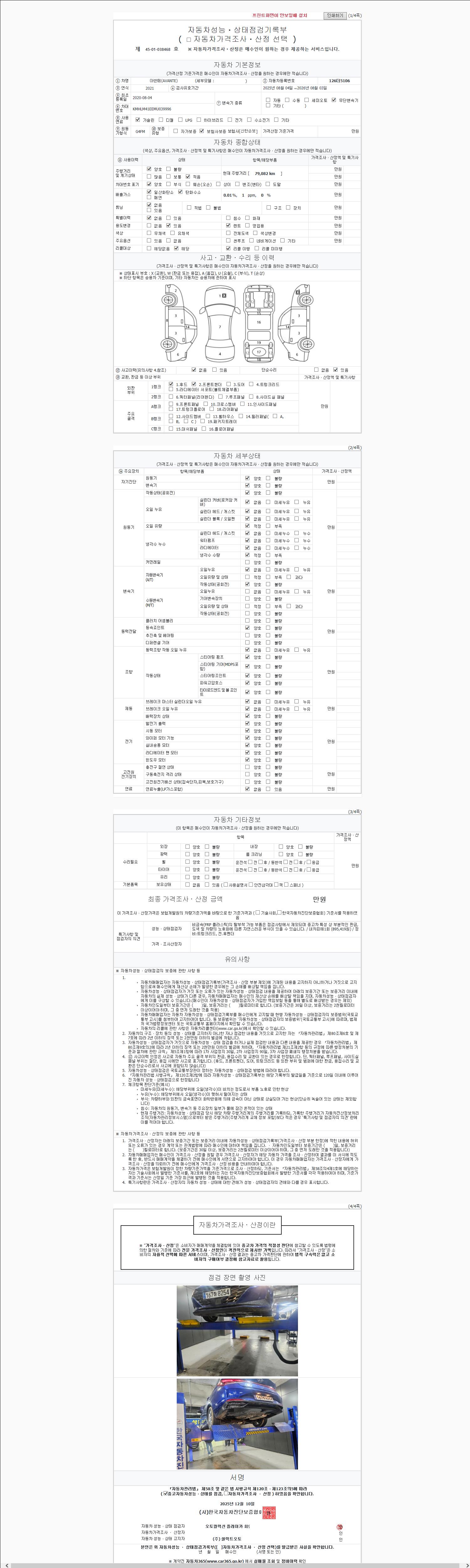 - 2. 차량 등록증이나 성능점검지 등을 상담자에게 요청및 확인하시고 사전에 미리 점검 하시기를 권유드립니다.