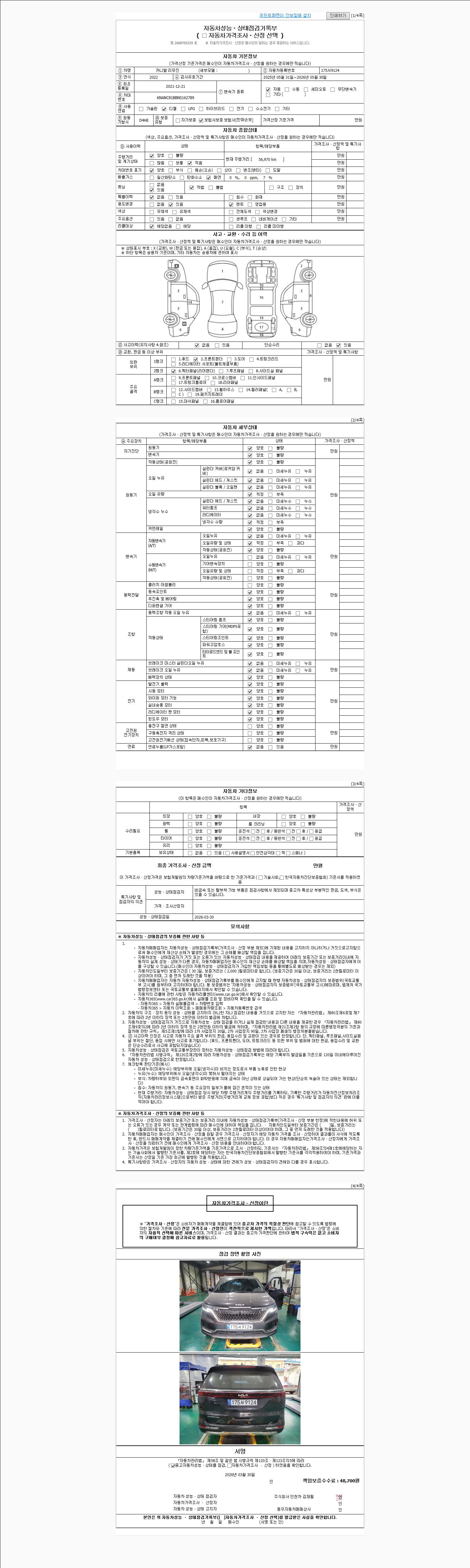- 2. 차량 등록증이나 성능점검지 등을 상담자에게 요청및 확인하시고 사전에 미리 점검 하시기를 권유드립니다.
