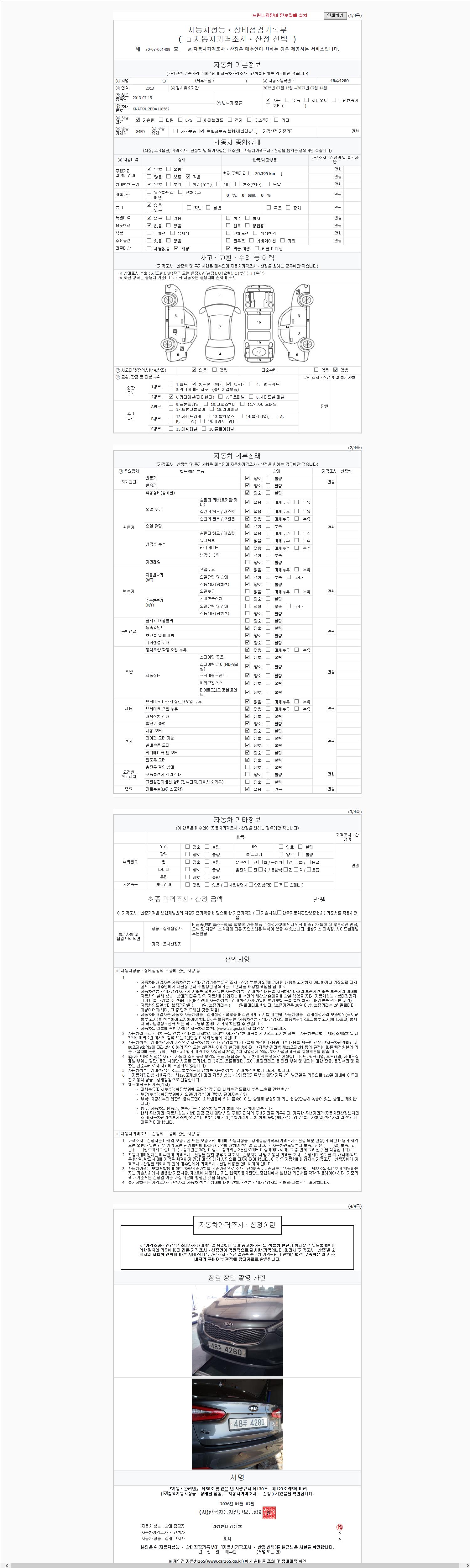 - 2. 차량 등록증이나 성능점검지 등을 상담자에게 요청및 확인하시고 사전에 미리 점검 하시기를 권유드립니다.