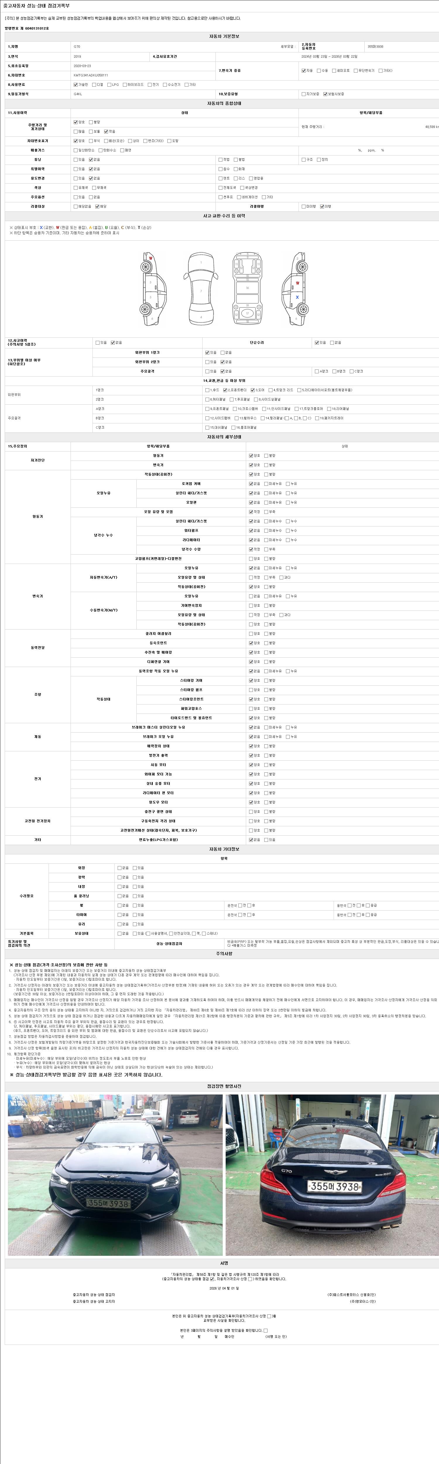 - 2. 차량 등록증이나 성능점검지 등을 상담자에게 요청및 확인하시고 사전에 미리 점검 하시기를 권유드립니다.