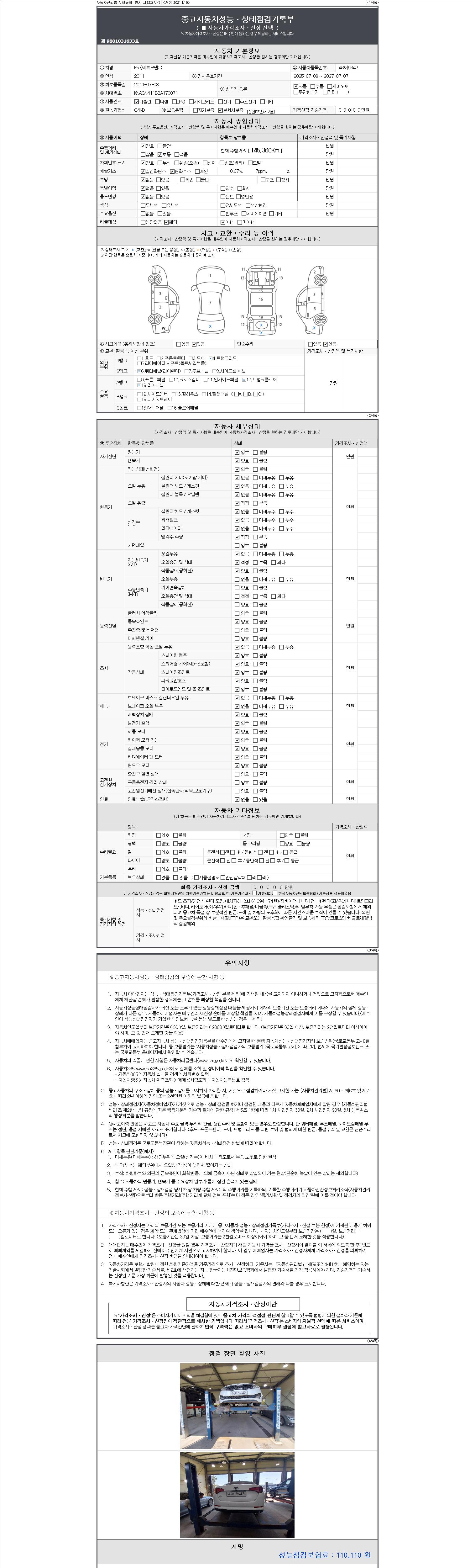 -중고자동차 매매업자를 통해 차량을 구입하실 경우 반드시 "중고자동차 성능, 상태점검 기록부"를 교뷰 받으셔야 하며, 매매업자는 반드시 의무 교부 하여야 압니다.