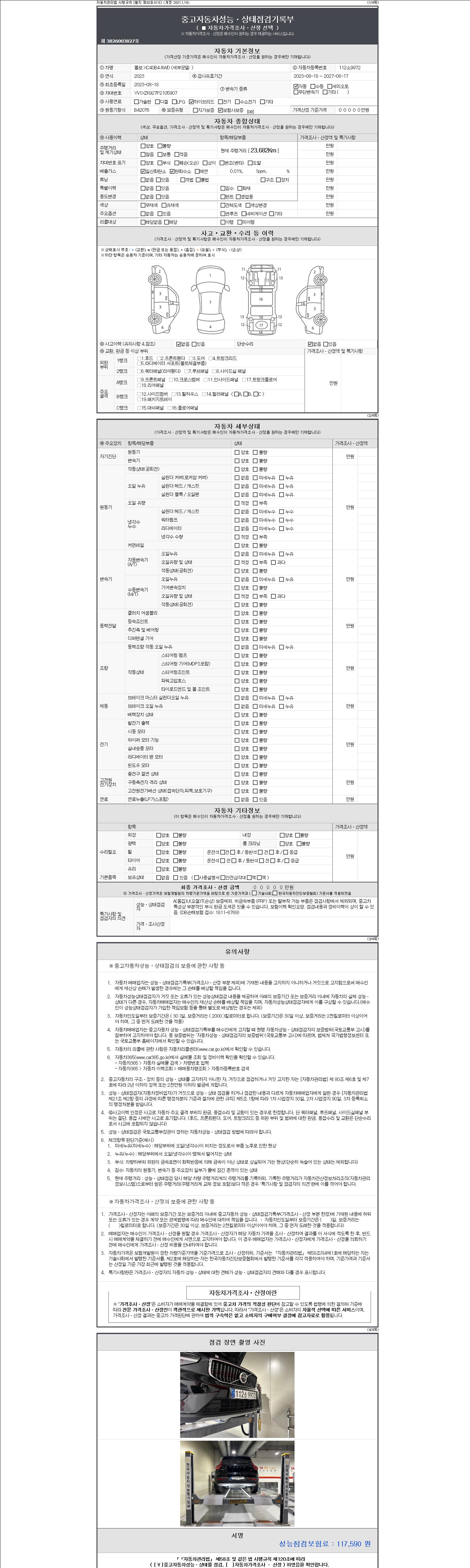 - 2. 차량 등록증이나 성능점검지 등을 상담자에게 요청및 확인하시고 사전에 미리 점검 하시기를 권유드립니다.