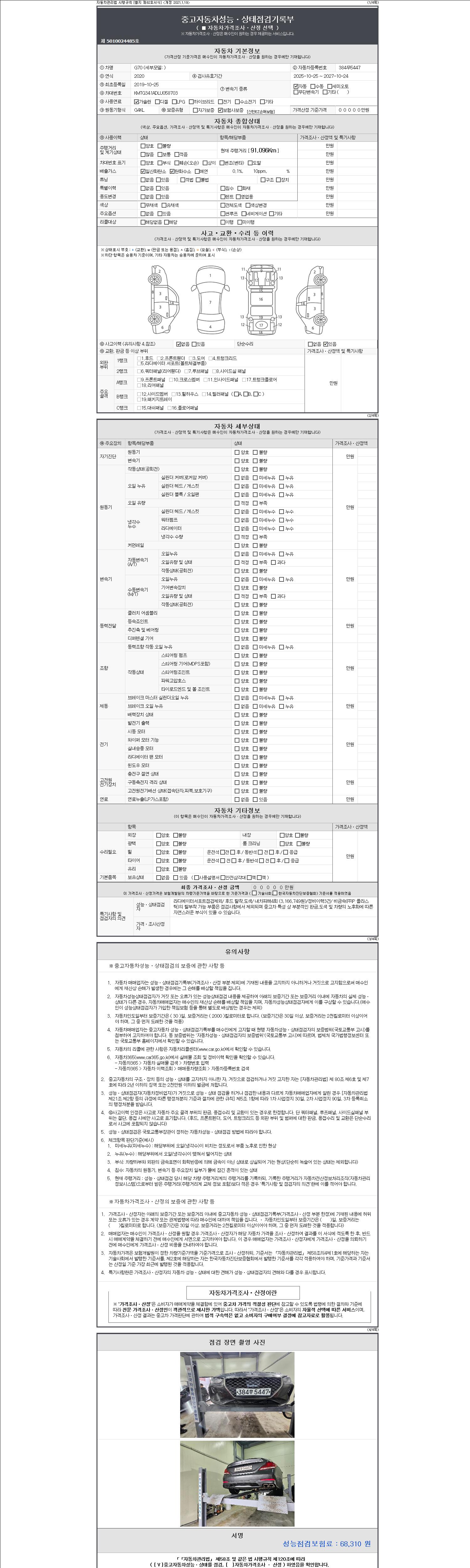 - 2. 차량 등록증이나 성능점검지 등을 상담자에게 요청및 확인하시고 사전에 미리 점검 하시기를 권유드립니다.