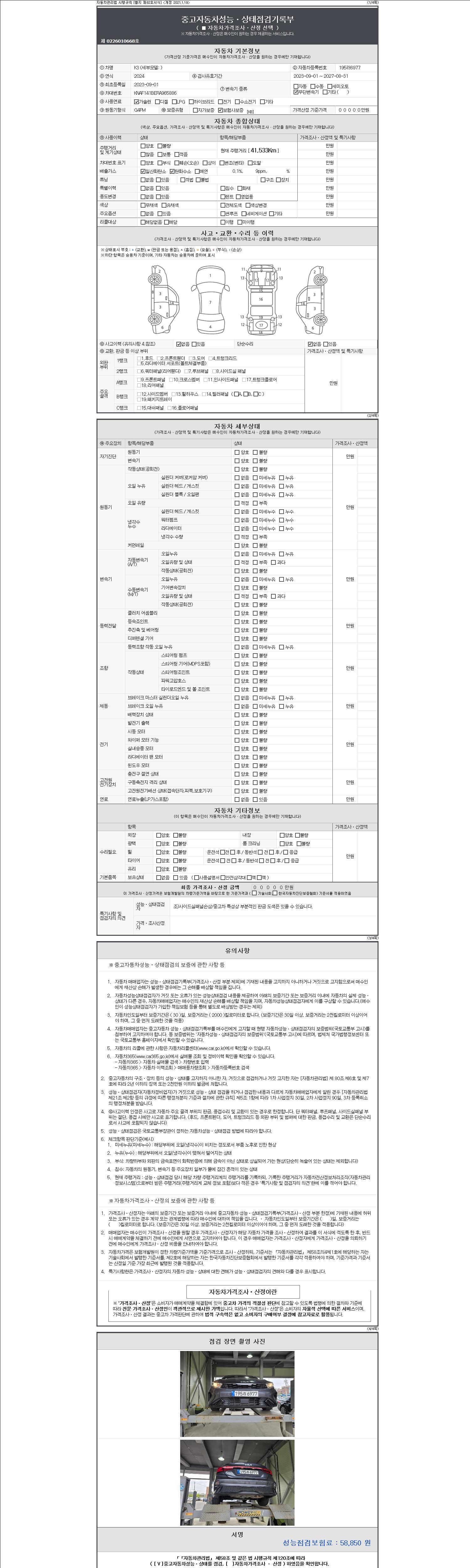 - 2. 차량 등록증이나 성능점검지 등을 상담자에게 요청및 확인하시고 사전에 미리 점검 하시기를 권유드립니다.