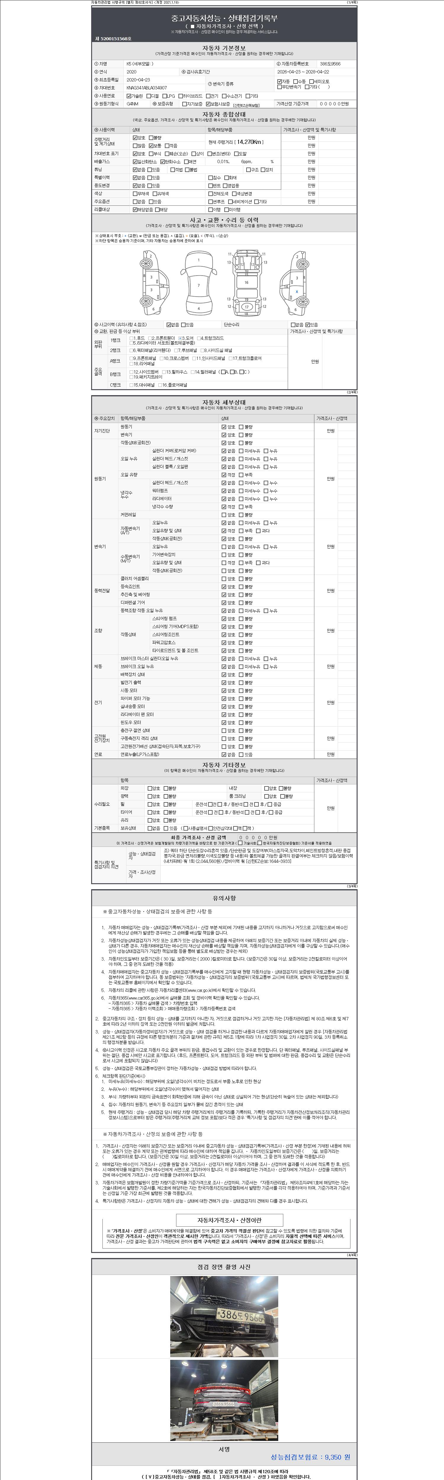 | 주행거리 | 14,270 km | 차량번호 | 386도9566 | 사고유무 | 성능기록부 참조 | 제시번호 | 제 2147483647 호 |