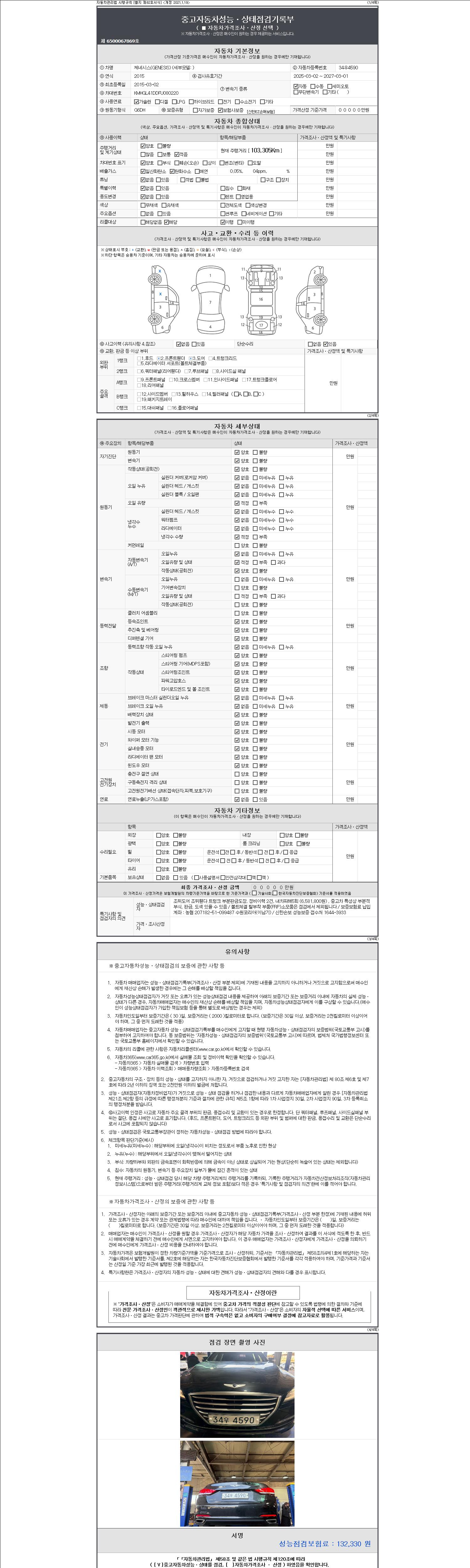| 주행거리 | 103,305 km | 차량번호 | 34우4590 | 사고유무 | 성능기록부 참조 | 제시번호 | 제 2147483647 호 |