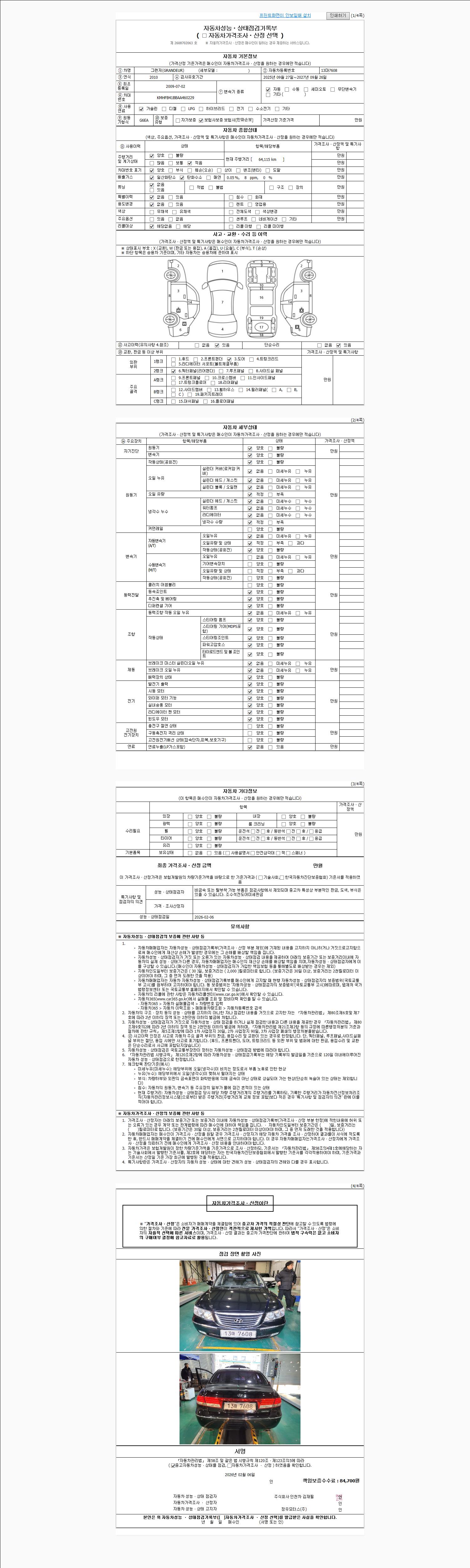 -중고자동차 매매업자를 통해 차량을 구입하실 경우 반드시 "중고자동차 성능, 상태점검 기록부"를 교뷰 받으셔야 하며, 매매업자는 반드시 의무 교부 하여야 압니다.