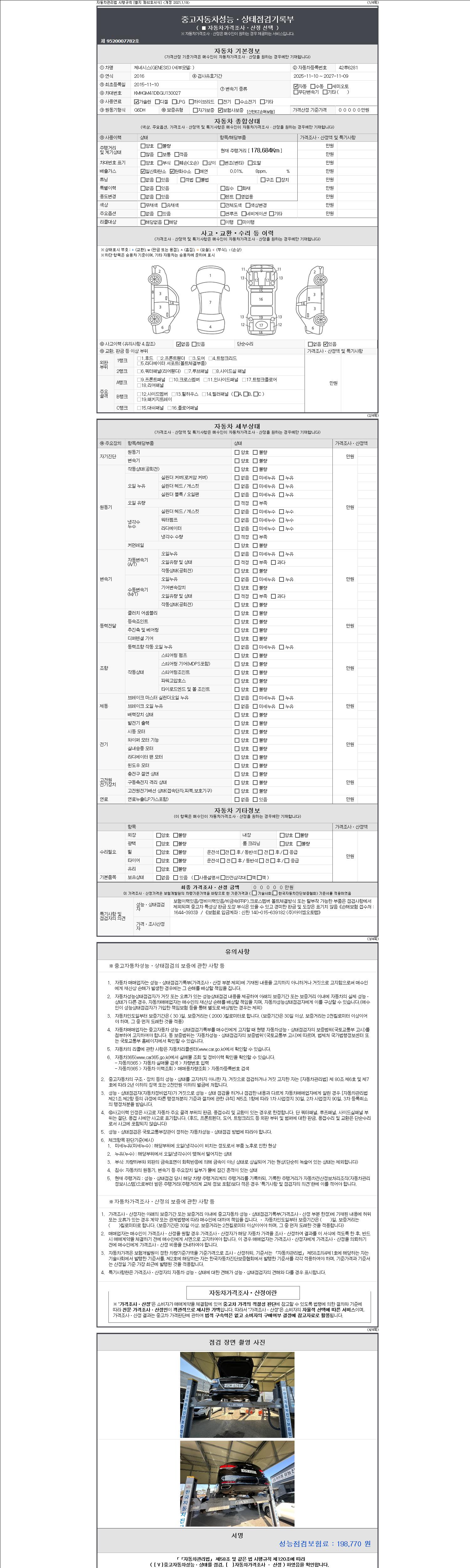 - 2. 차량 등록증이나 성능점검지 등을 상담자에게 요청및 확인하시고 사전에 미리 점검 하시기를 권유드립니다.