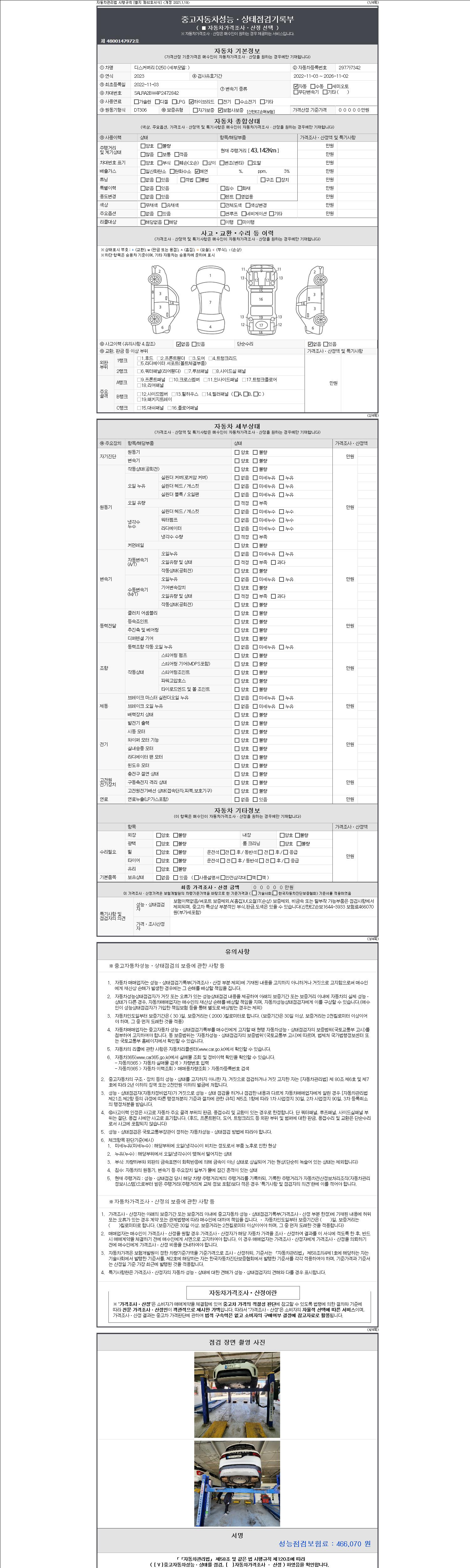 - 2. 차량 등록증이나 성능점검지 등을 상담자에게 요청및 확인하시고 사전에 미리 점검 하시기를 권유드립니다.