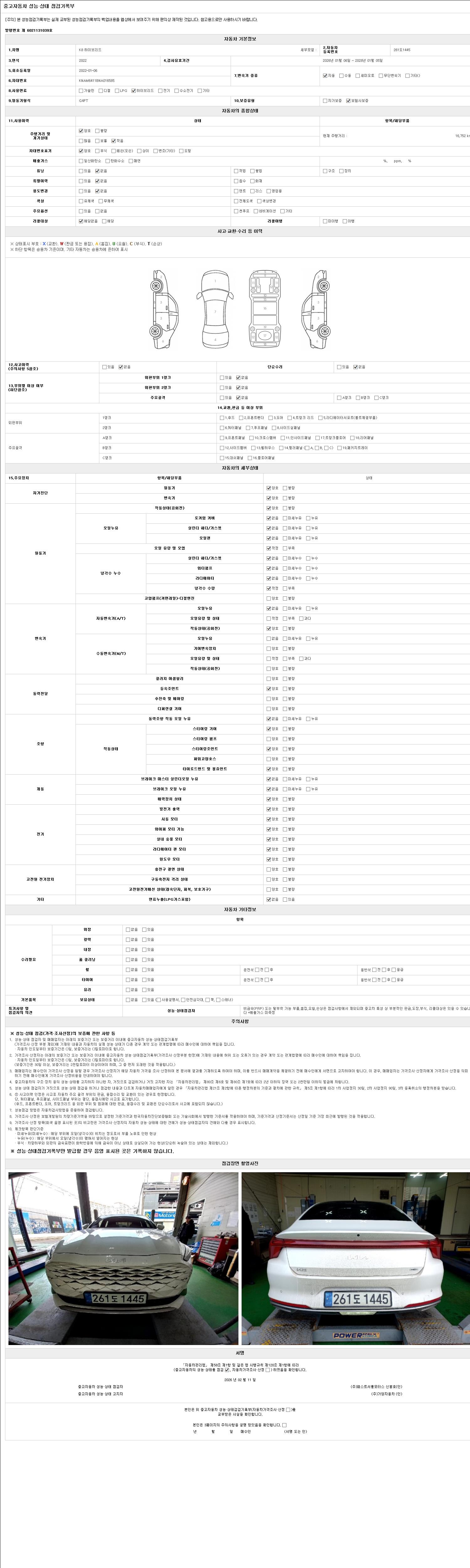- 2. 차량 등록증이나 성능점검지 등을 상담자에게 요청및 확인하시고 사전에 미리 점검 하시기를 권유드립니다.
