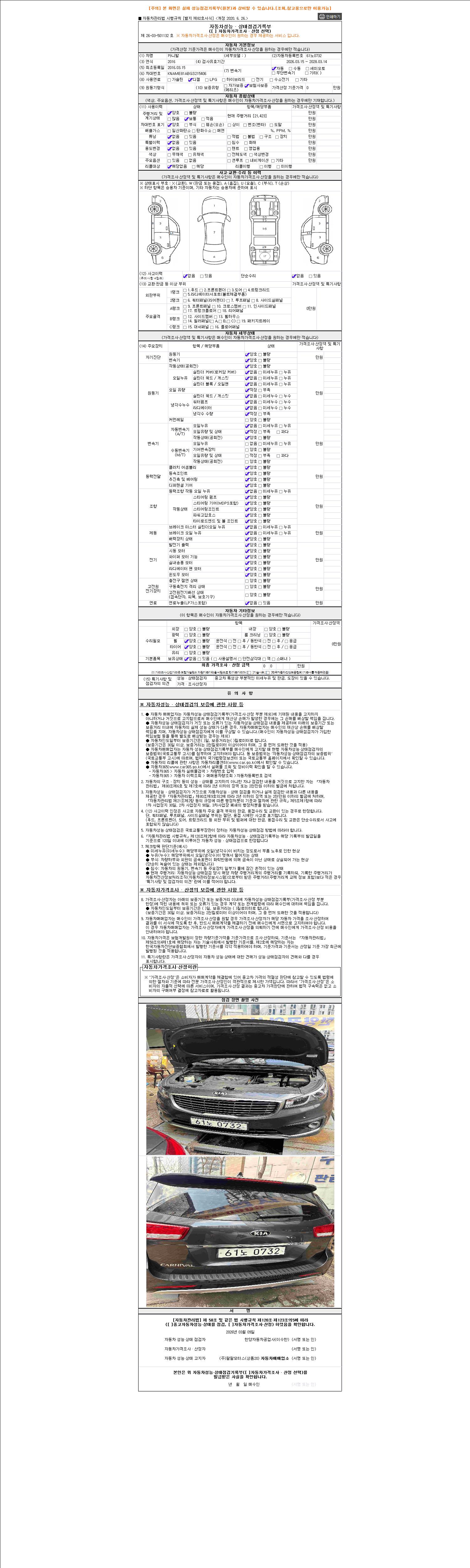 - 2. 차량 등록증이나 성능점검지 등을 상담자에게 요청및 확인하시고 사전에 미리 점검 하시기를 권유드립니다.