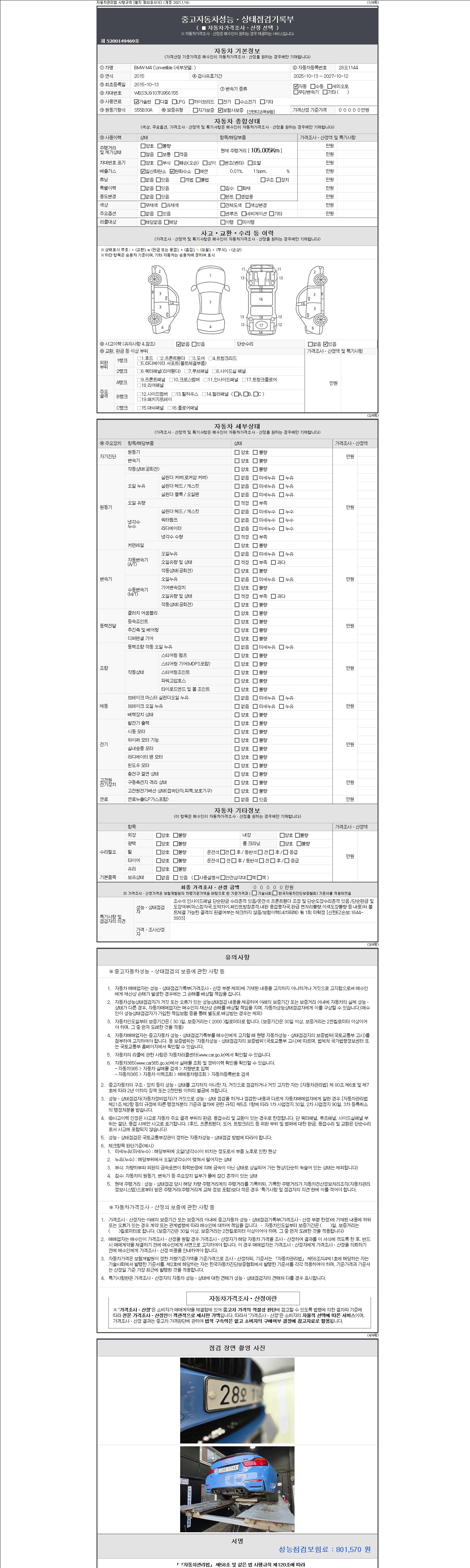 -중고자동차 매매업자를 통해 차량을 구입하실 경우 반드시 "중고자동차 성능, 상태점검 기록부"를 교뷰 받으셔야 하며, 매매업자는 반드시 의무 교부 하여야 압니다.