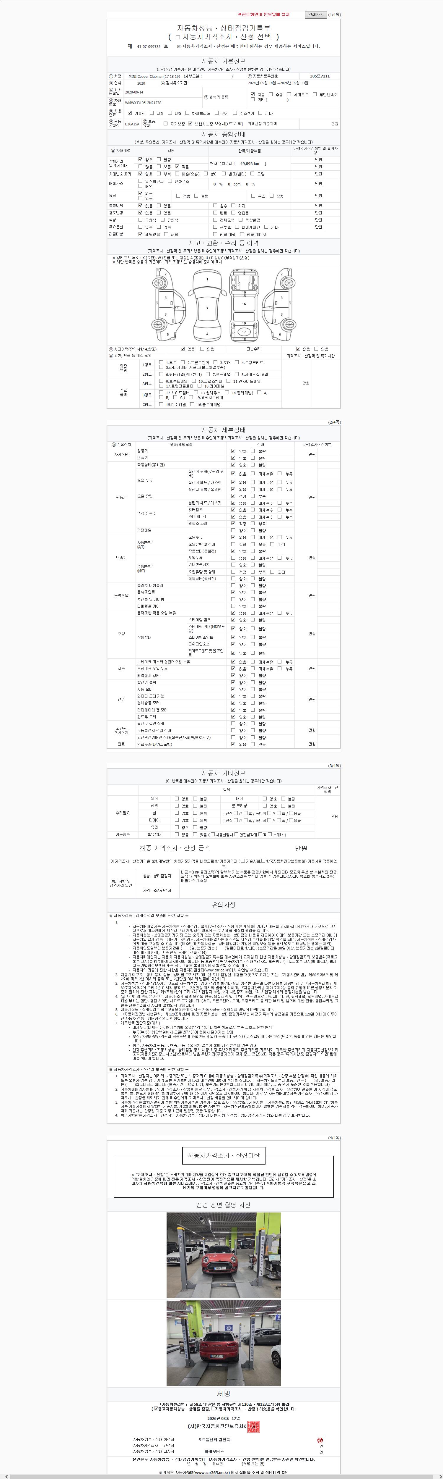 - 2. 차량 등록증이나 성능점검지 등을 상담자에게 요청및 확인하시고 사전에 미리 점검 하시기를 권유드립니다.