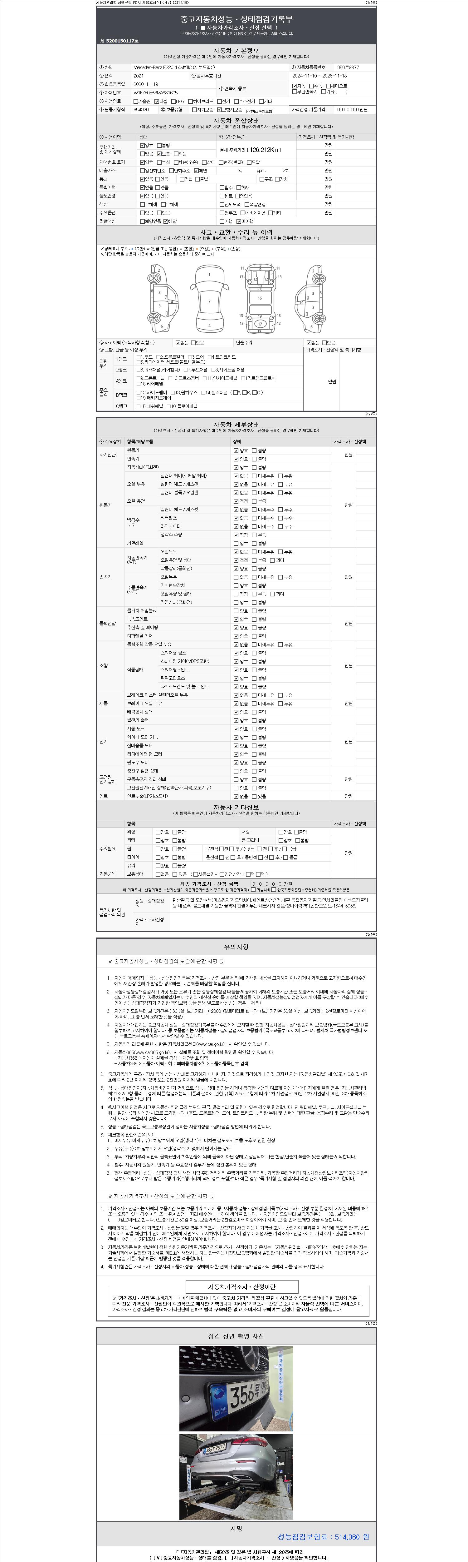 - 사고유무 : 성능기록부 참조