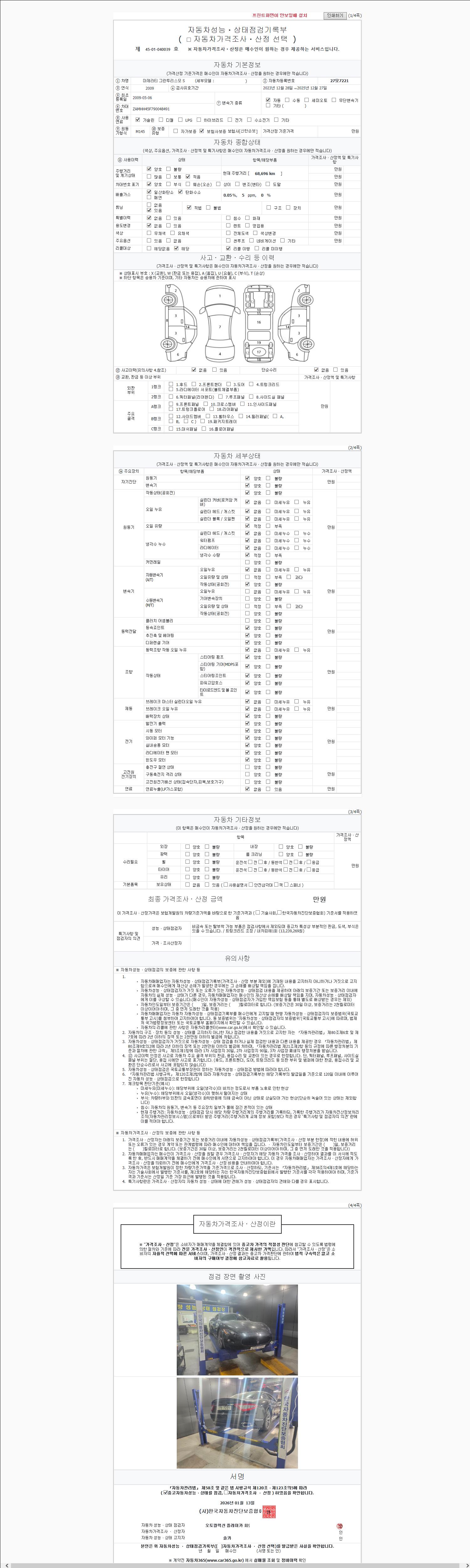 - 2. 차량 등록증이나 성능점검지 등을 상담자에게 요청및 확인하시고 사전에 미리 점검 하시기를 권유드립니다.