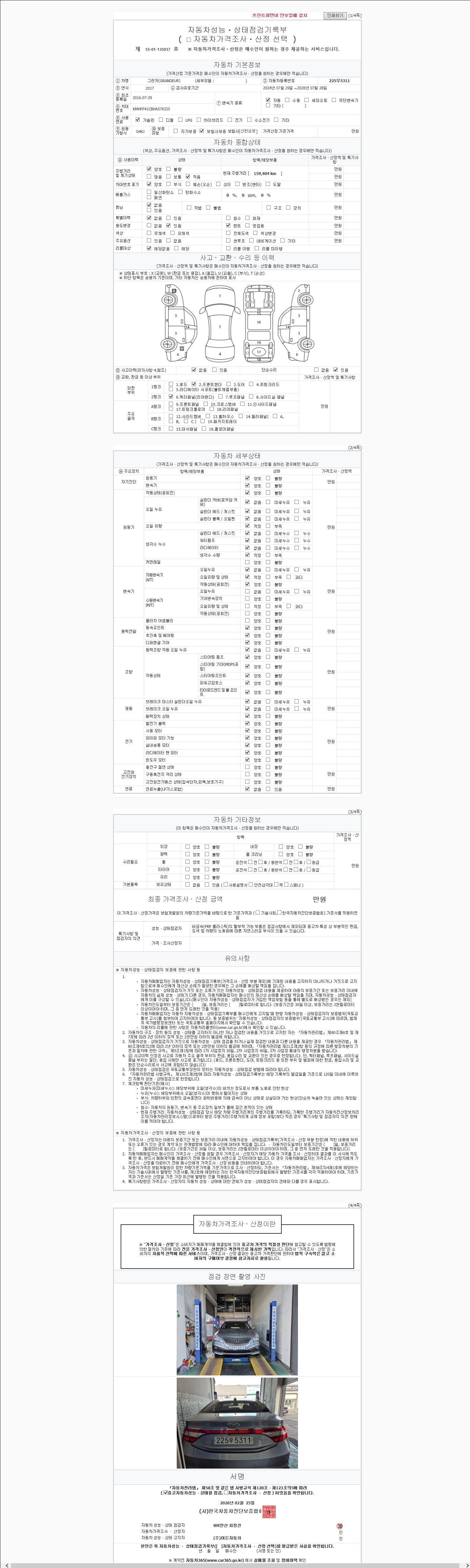 | 주행거리 | 159,396 km | 차량번호 | 225우5311 | 사고유무 | 성능기록부 참조 | 제시번호 | 제 2147483647 호 |