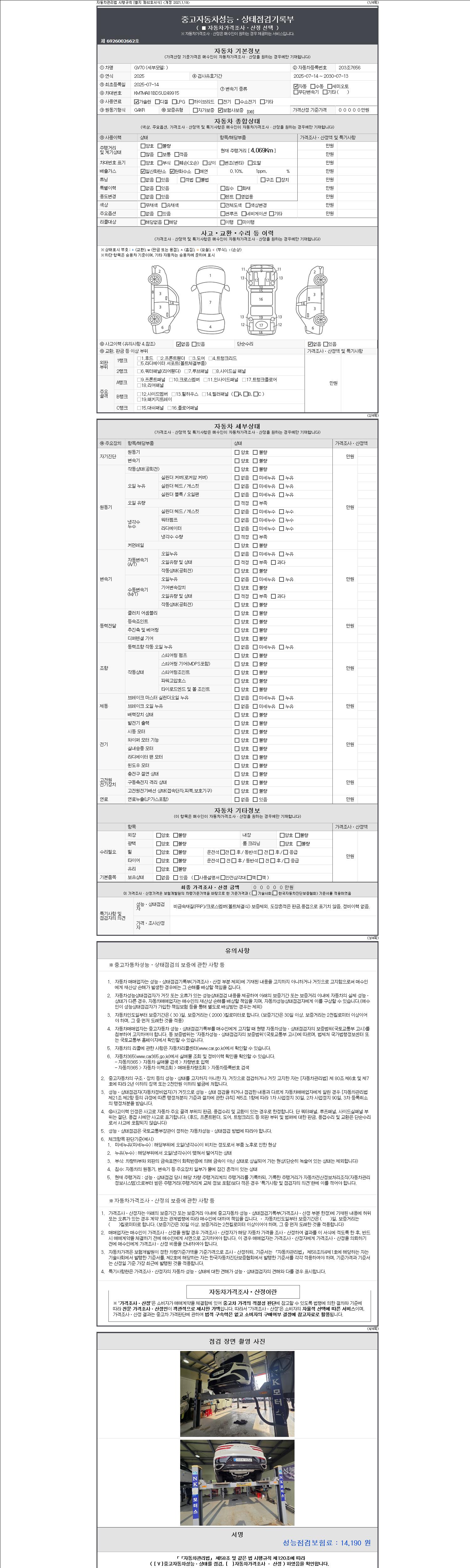- 2. 차량 등록증이나 성능점검지 등을 상담자에게 요청및 확인하시고 사전에 미리 점검 하시기를 권유드립니다.