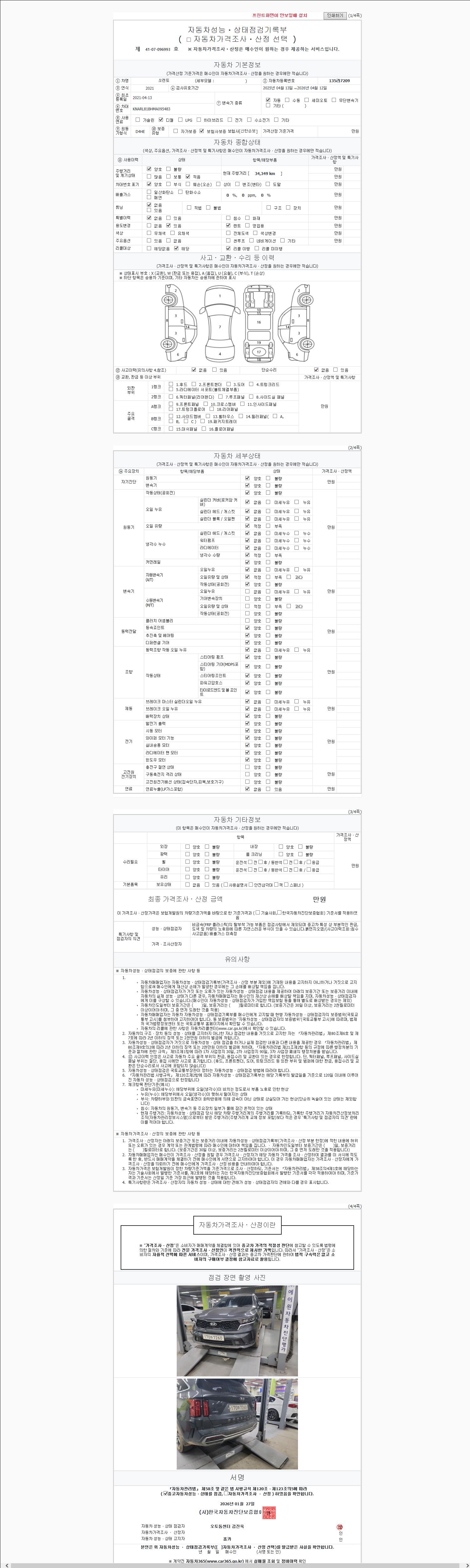 | 주행거리 | 34,347 km | 차량번호 | 135라7209 | 사고유무 | 성능기록부 참조 | 제시번호 | 제 2147483647 호 |