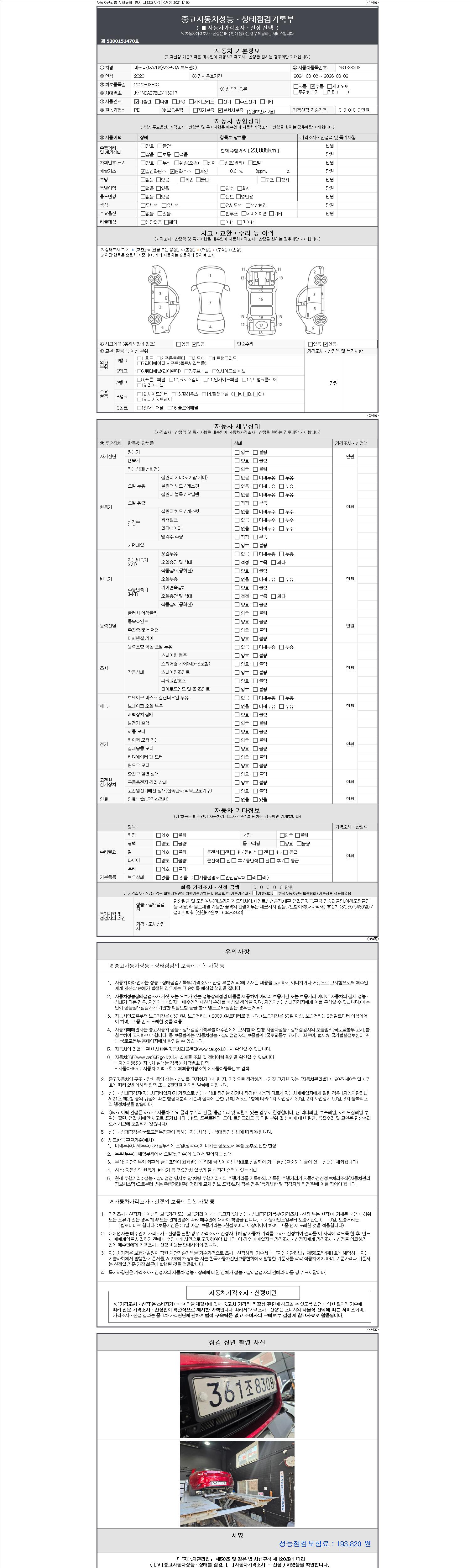 - 사고유무 : 성능기록부 참조