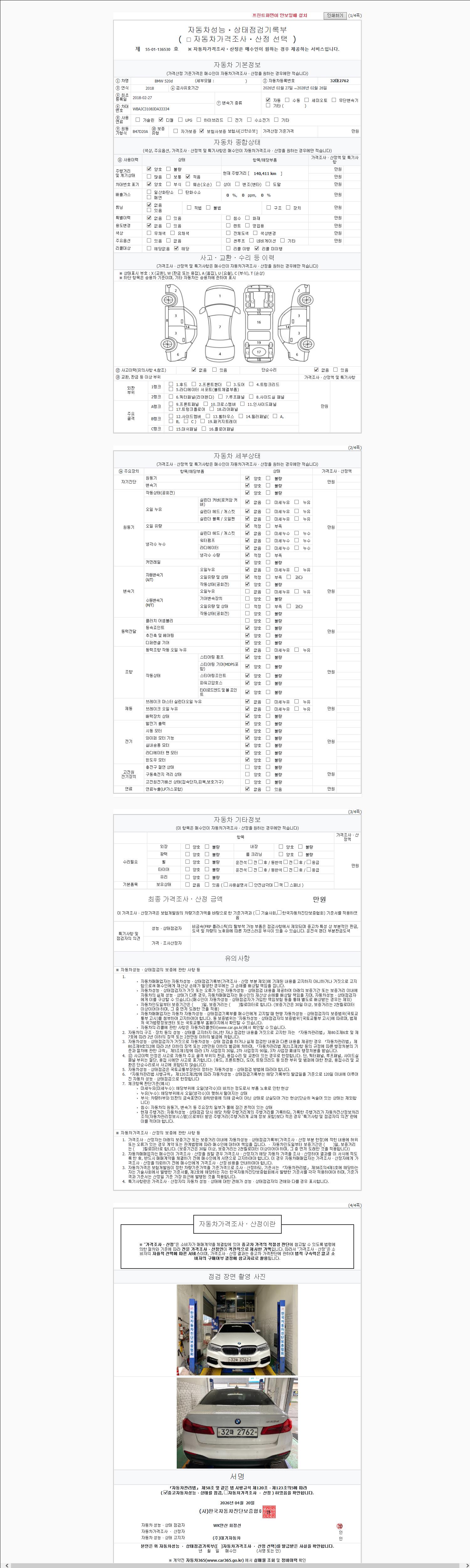 | 주행거리 | 140,411 km | 차량번호 | 32마2762 | 사고유무 | 성능기록부 참조 | 제시번호 | 제 2147483647 호 |