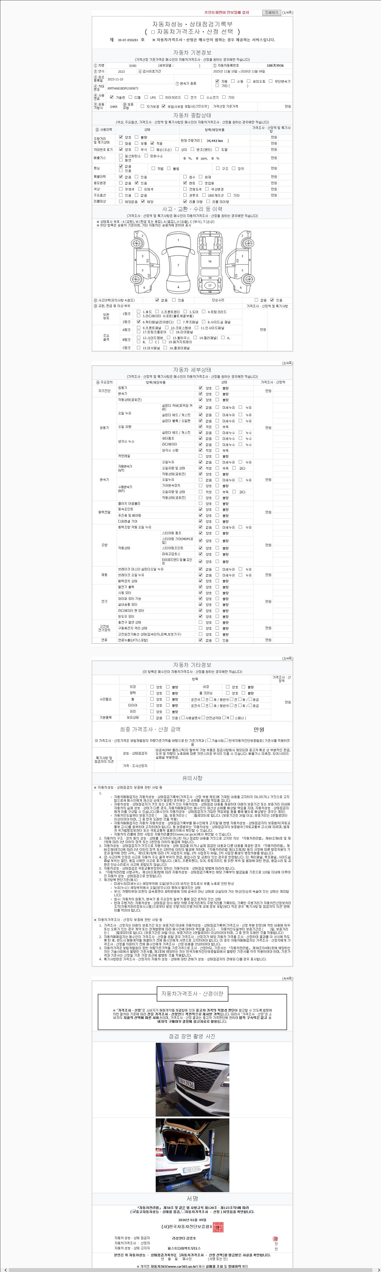 | 주행거리 | 34,441 km | 차량번호 | 108거3936 | 사고유무 | 성능기록부 참조 | 제시번호 | 제 2147483647 호 |