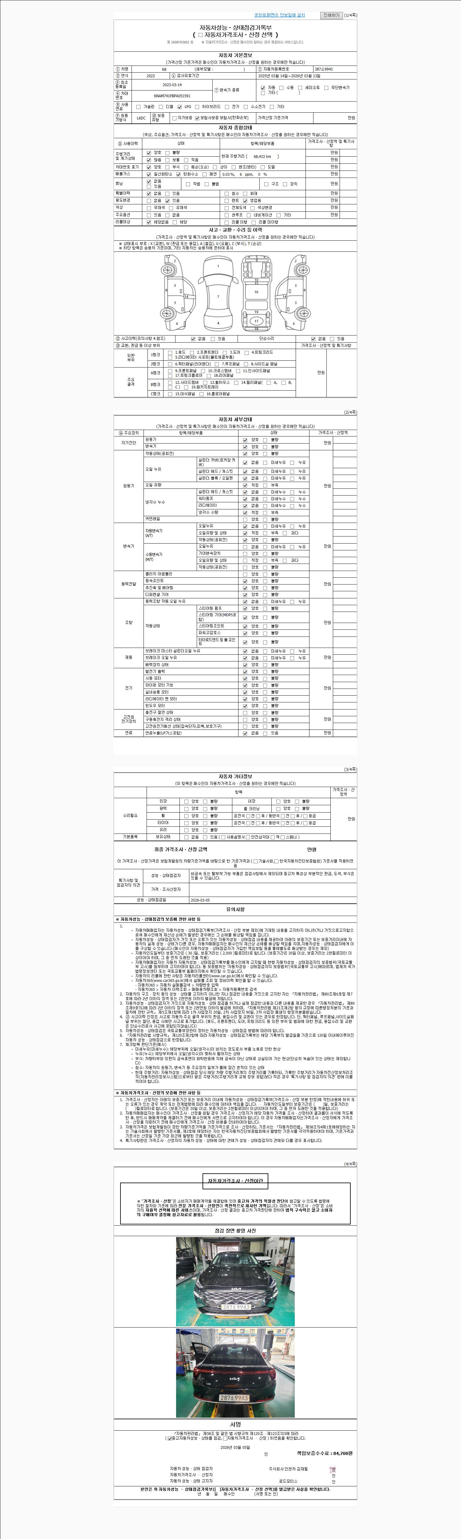 - 2. 차량 등록증이나 성능점검지 등을 상담자에게 요청및 확인하시고 사전에 미리 점검 하시기를 권유드립니다.