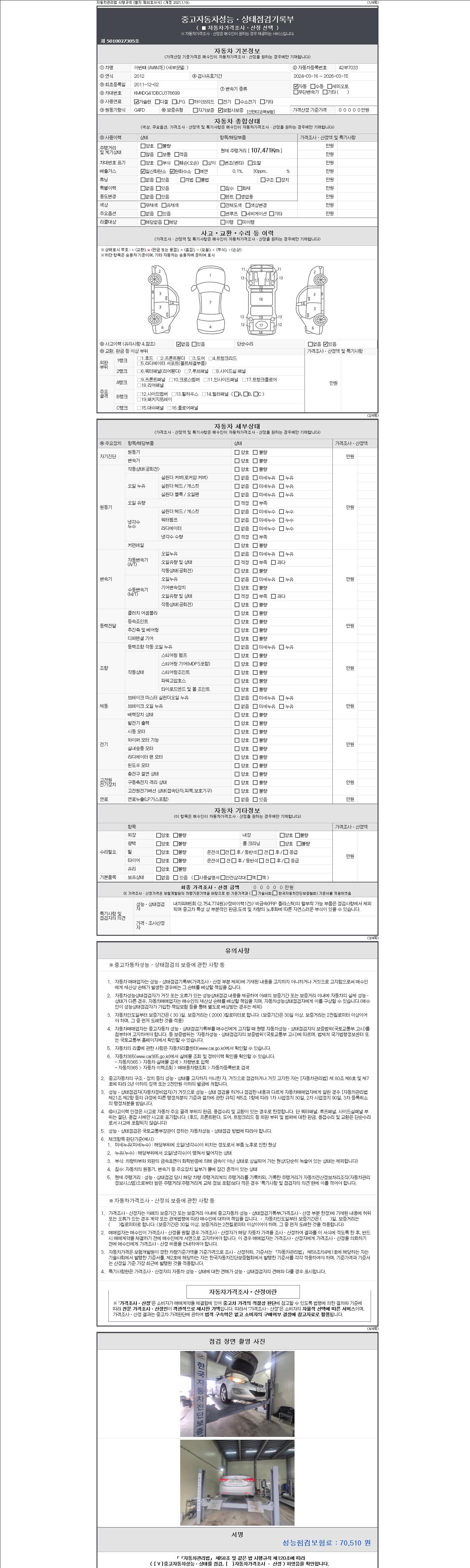 -중고자동차 매매업자를 통해 차량을 구입하실 경우 반드시 "중고자동차 성능, 상태점검 기록부"를 교뷰 받으셔야 하며, 매매업자는 반드시 의무 교부 하여야 압니다.