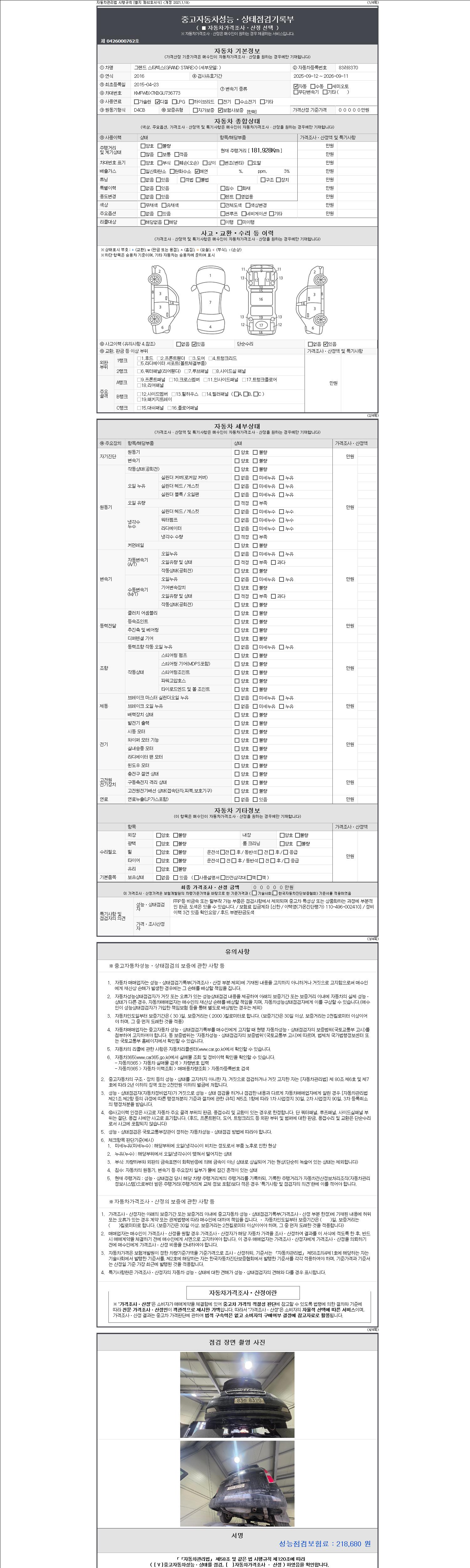 - 2. 차량 등록증이나 성능점검지 등을 상담자에게 요청및 확인하시고 사전에 미리 점검 하시기를 권유드립니다.