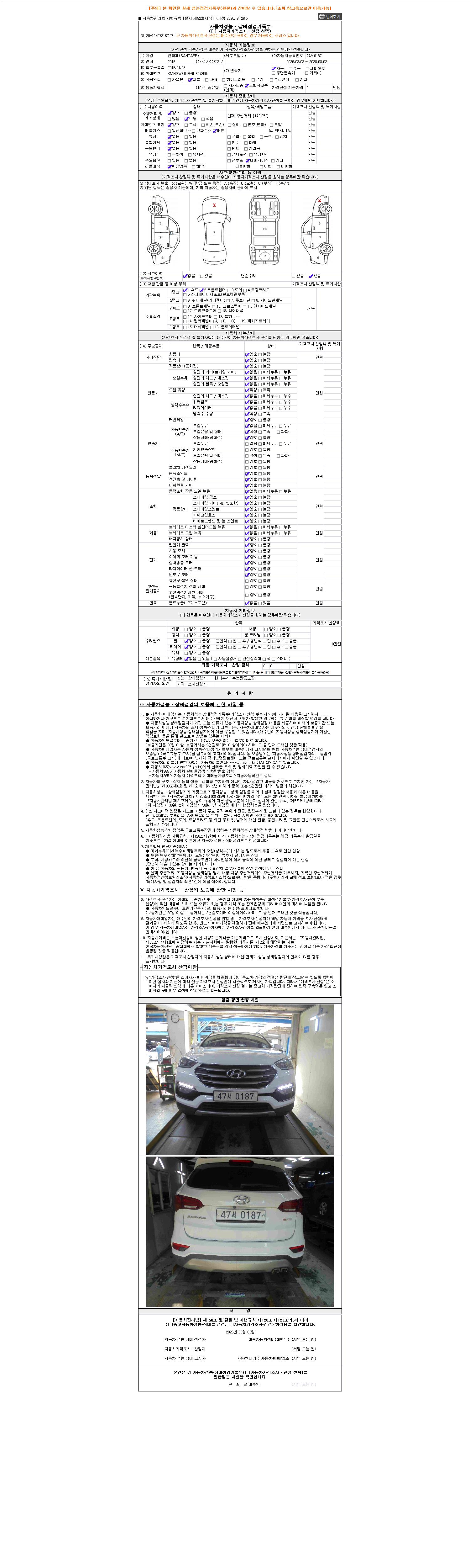 - 2. 차량 등록증이나 성능점검지 등을 상담자에게 요청및 확인하시고 사전에 미리 점검 하시기를 권유드립니다.