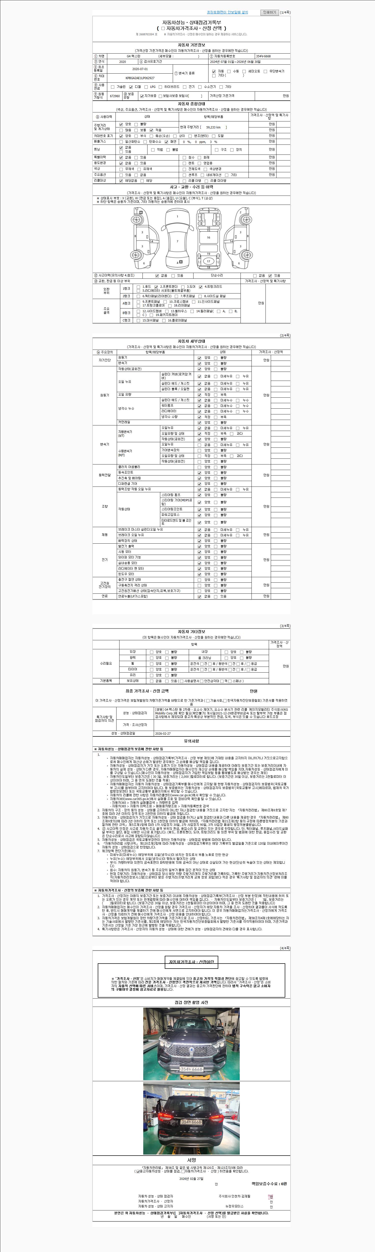 - 2. 차량 등록증이나 성능점검지 등을 상담자에게 요청및 확인하시고 사전에 미리 점검 하시기를 권유드립니다.