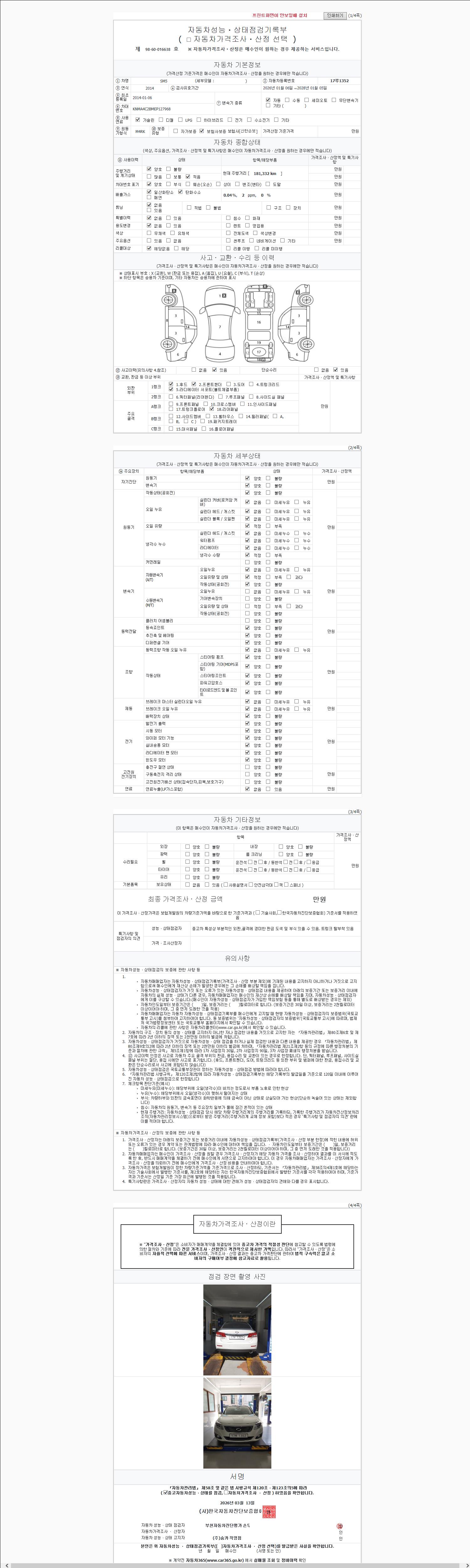 - 2. 차량 등록증이나 성능점검지 등을 상담자에게 요청및 확인하시고 사전에 미리 점검 하시기를 권유드립니다.