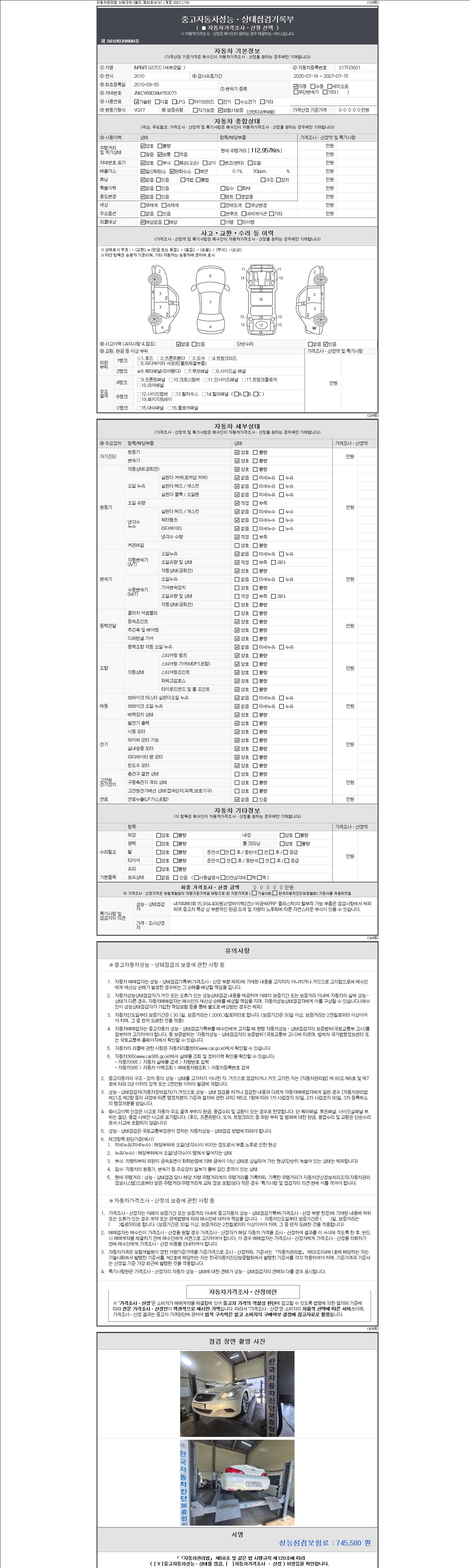 | 주행거리 | 112,957 km | 차량번호 | 317더3601 | 사고유무 | 성능기록부 참조 | 제시번호 | 제 2147483647 호 |
