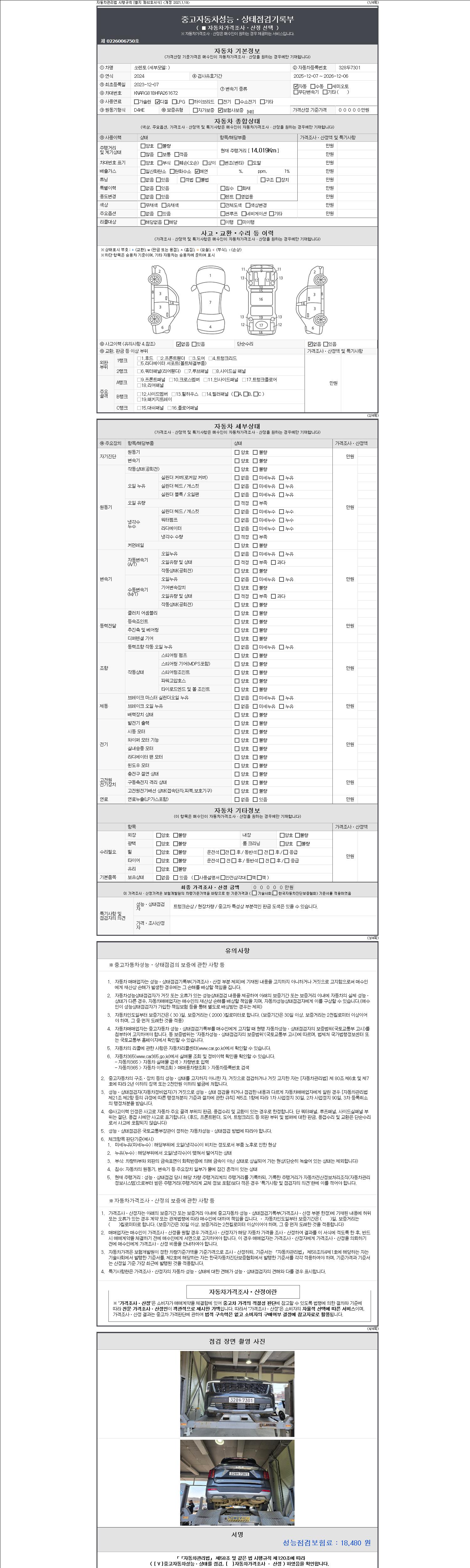 | 주행거리 | 14,019 km | 차량번호 | 328두7301 | 사고유무 | 성능기록부 참조 | 제시번호 | 제 2147483647 호 |