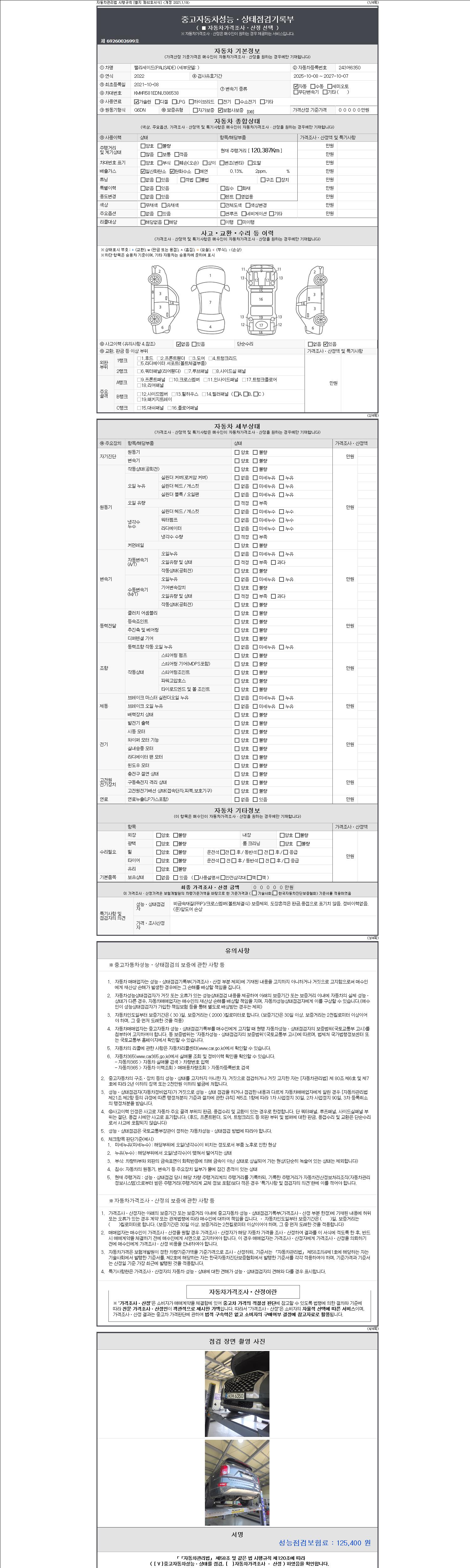 -중고자동차 매매업자를 통해 차량을 구입하실 경우 반드시 "중고자동차 성능, 상태점검 기록부"를 교뷰 받으셔야 하며, 매매업자는 반드시 의무 교부 하여야 압니다.